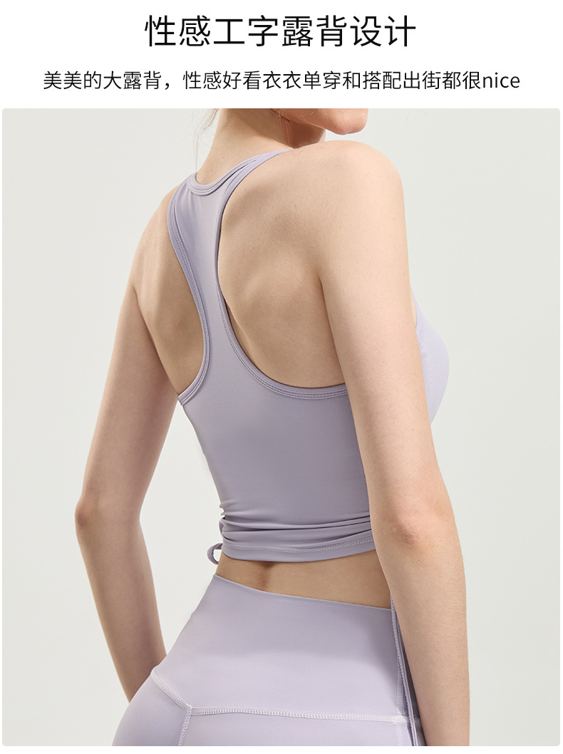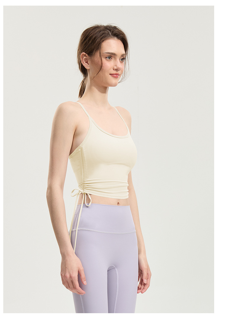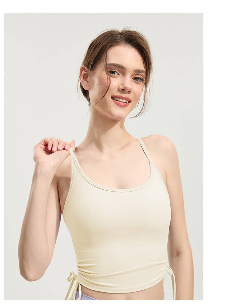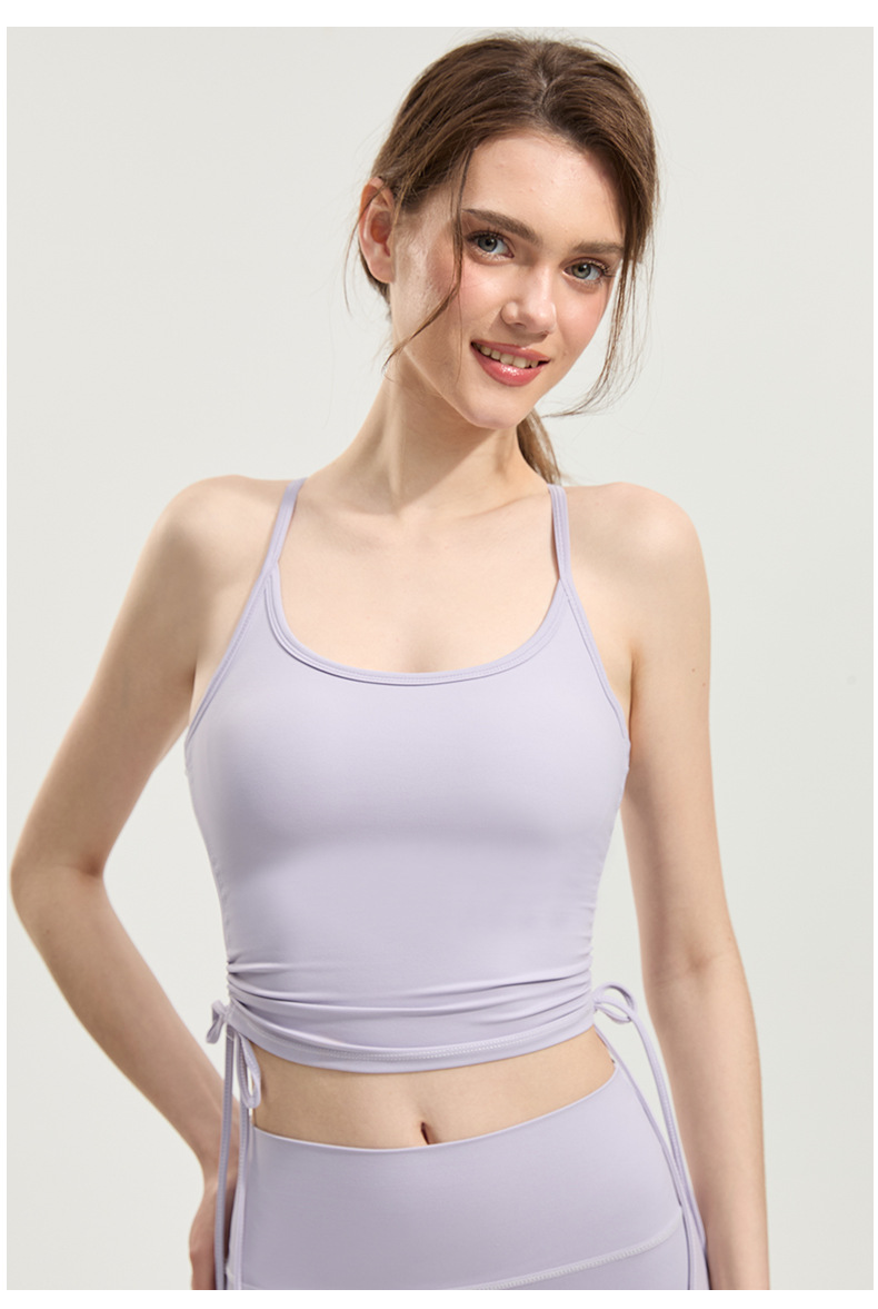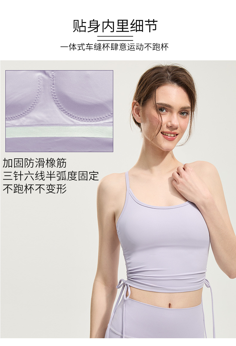 여름 신작 I자형 조끼, 사이드 드로스트링 스포츠 브라, 러닝 트레이닝 피트니스 의류, 충격 방지 아름다운 등 슬링