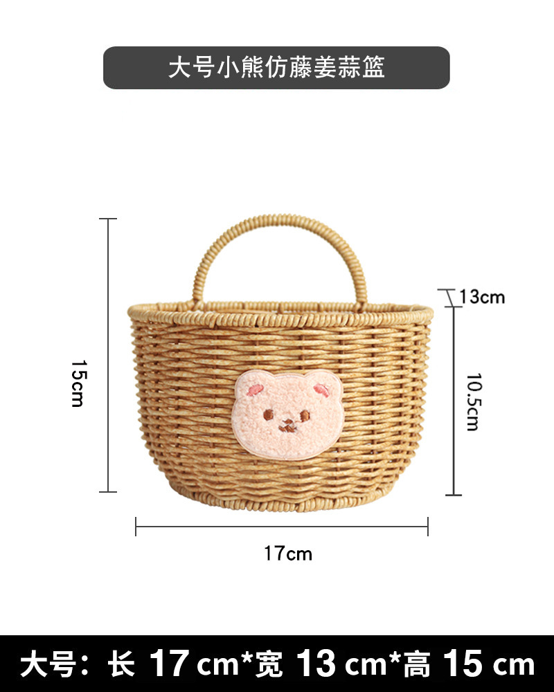 • 곰 스타일 모조 등나무 반원형 교수형 바구니 소형