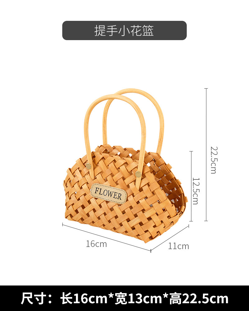 • 가죽 라벨 우드 칩 핸드 바구니