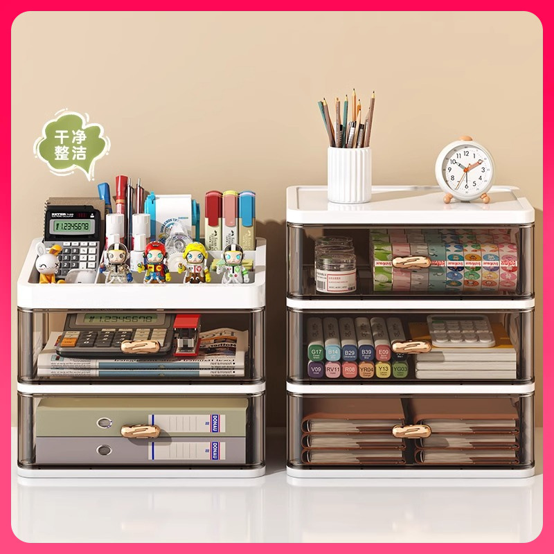 √ 서랍형 데스크탑 수납함 사무실 책상 다층 잡화 수납선반 문구류 수납함 투명 정리함스토어 가기