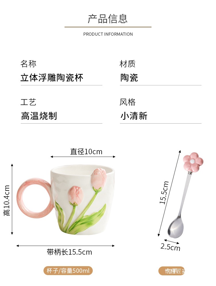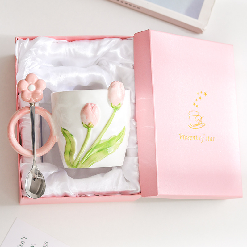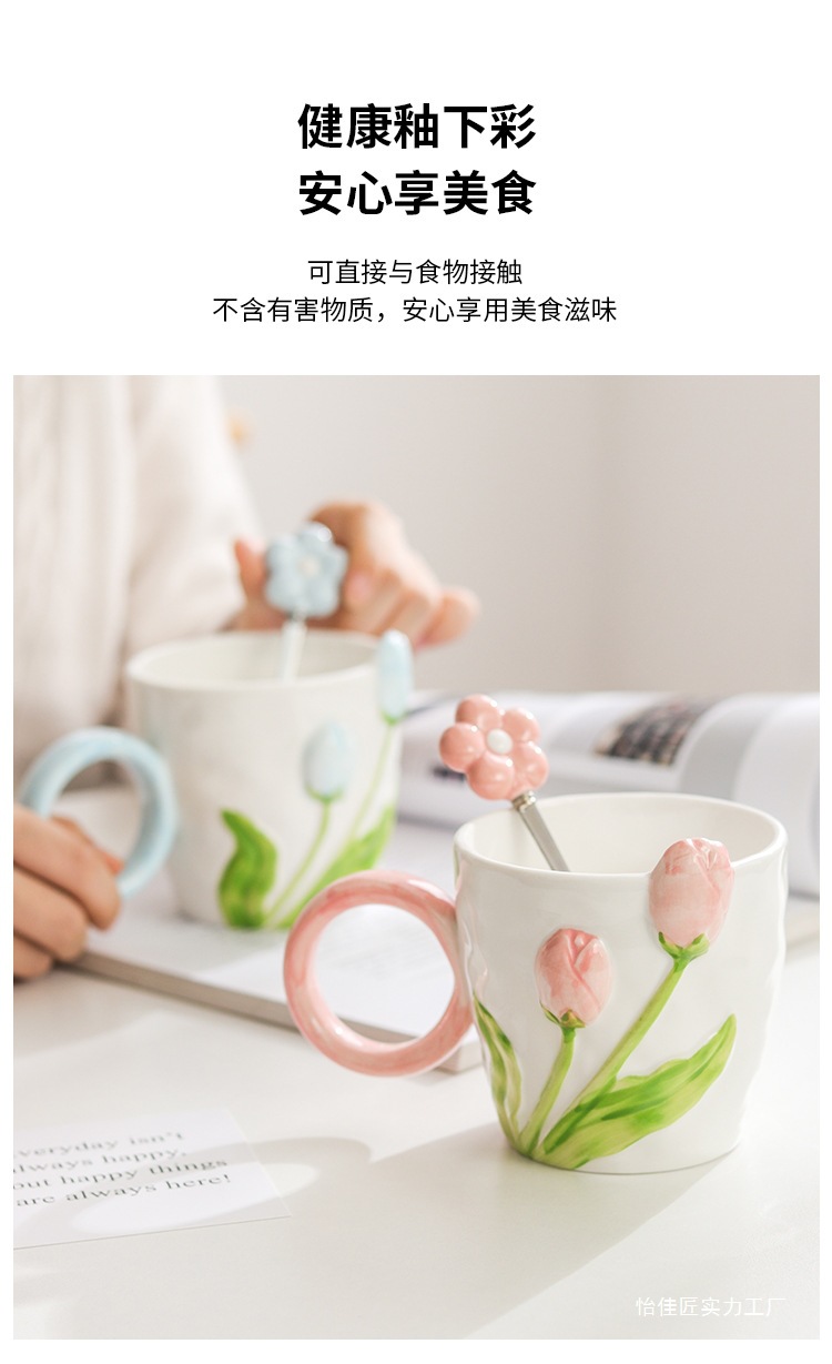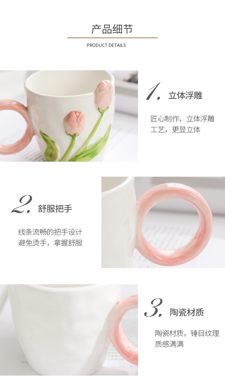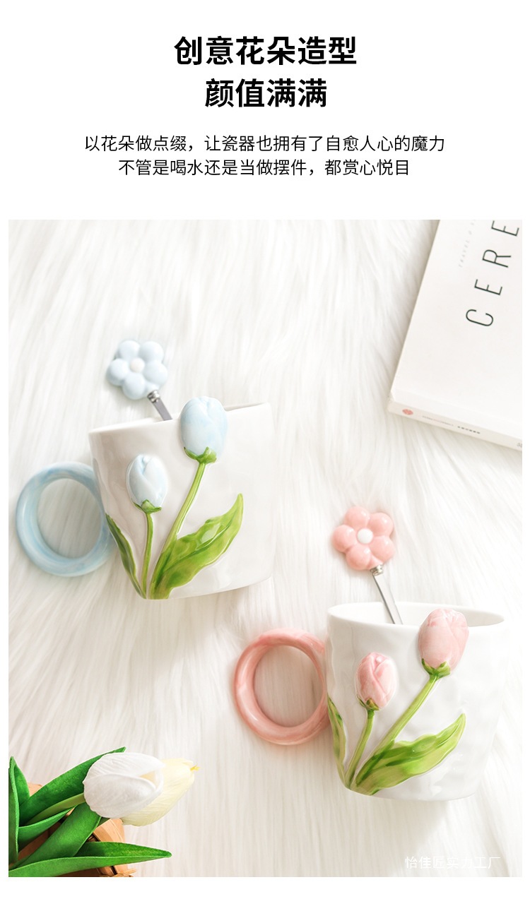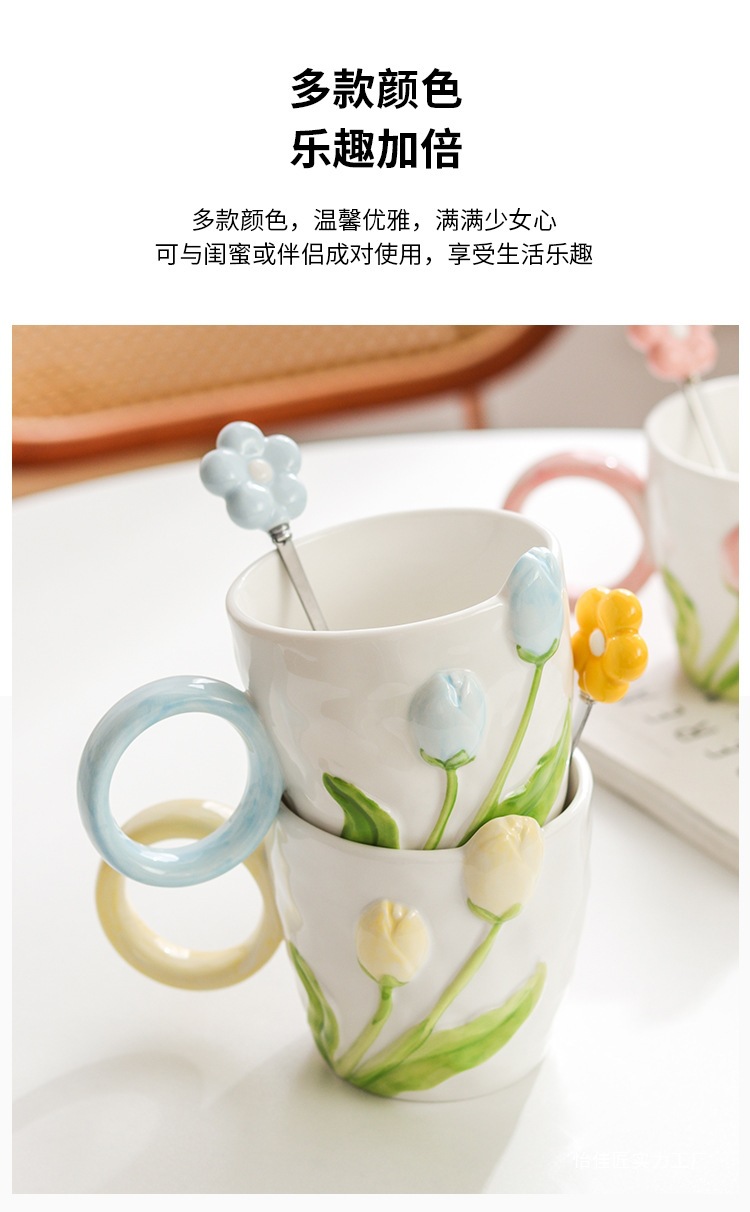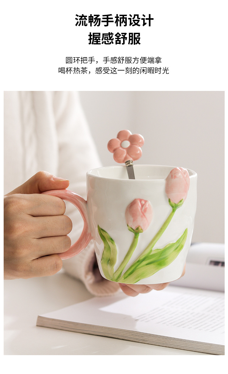 Ins 고급스러운 튤립 머그잔 틈새 디자인 세라믹 컵 소녀 홈 마시는 컵 커피 컵