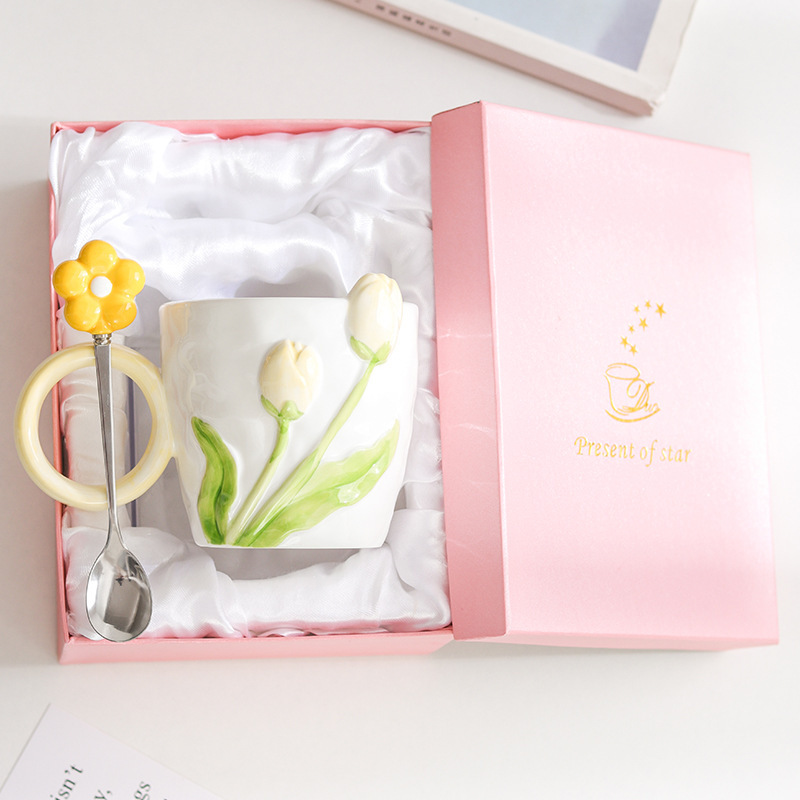 Ins 고급스러운 튤립 머그잔 틈새 디자인 세라믹 컵 소녀 홈 마시는 컵 커피 컵스토어 가기