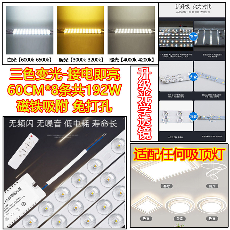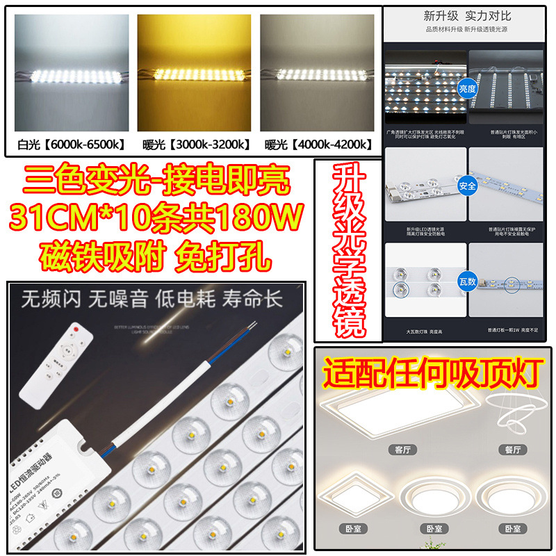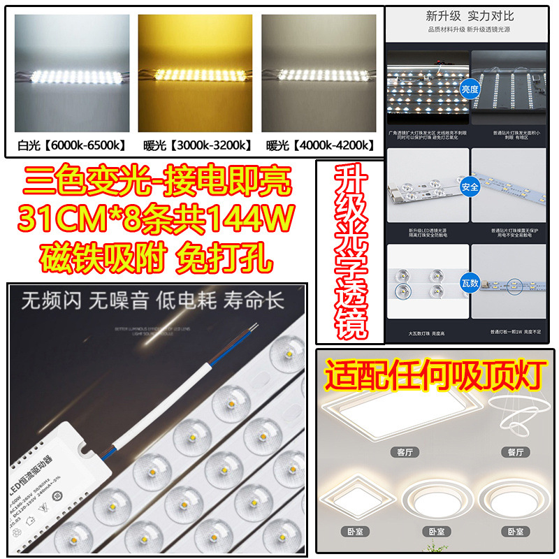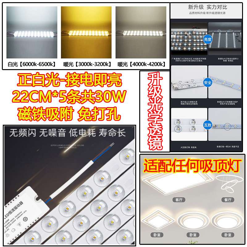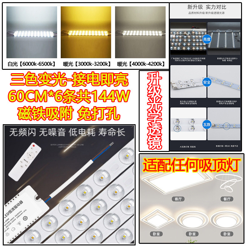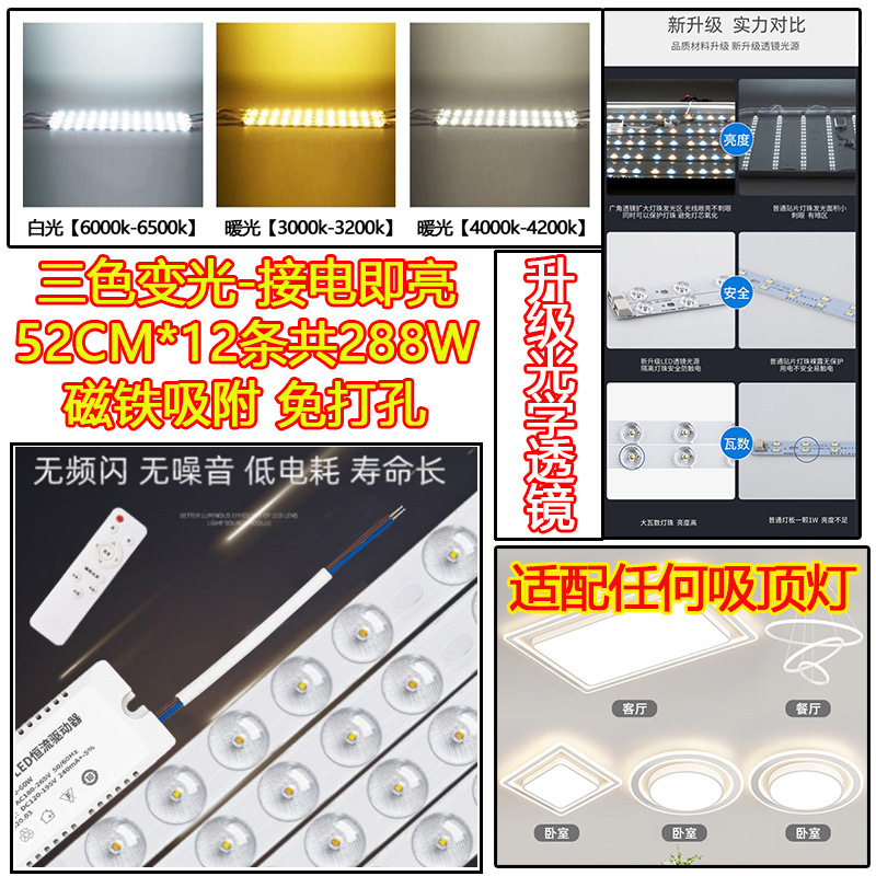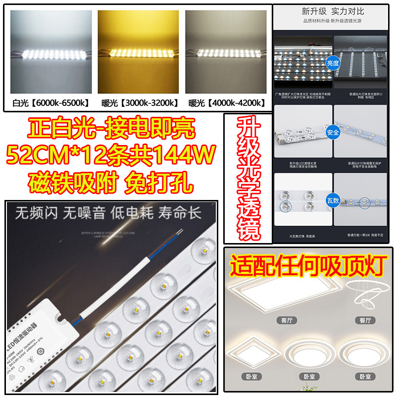 Jinhuan LED 천장 조명 심지 라이트 스트립 자기 흡입 가정용 교체 가능한 라이트 스트립 라이트 튜브 눈 보호 슈퍼 밝고 깜박임 없음