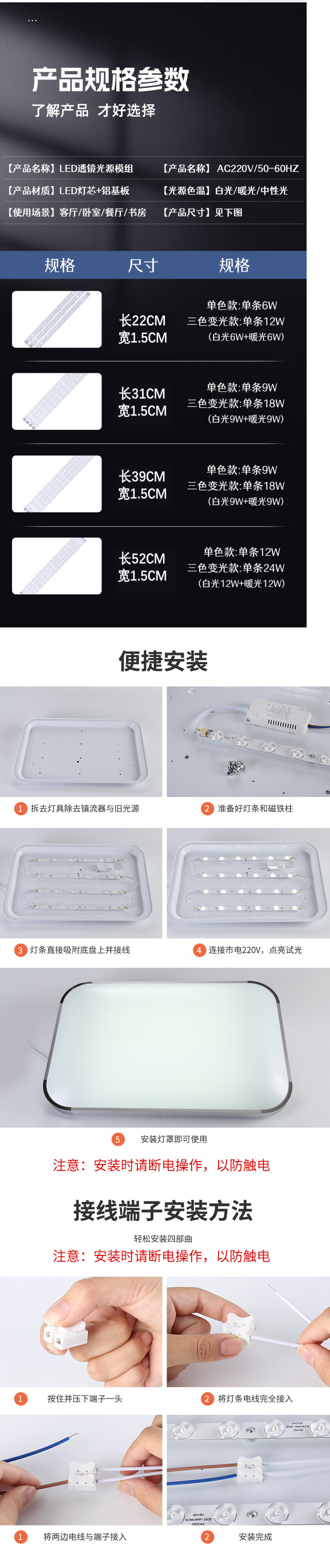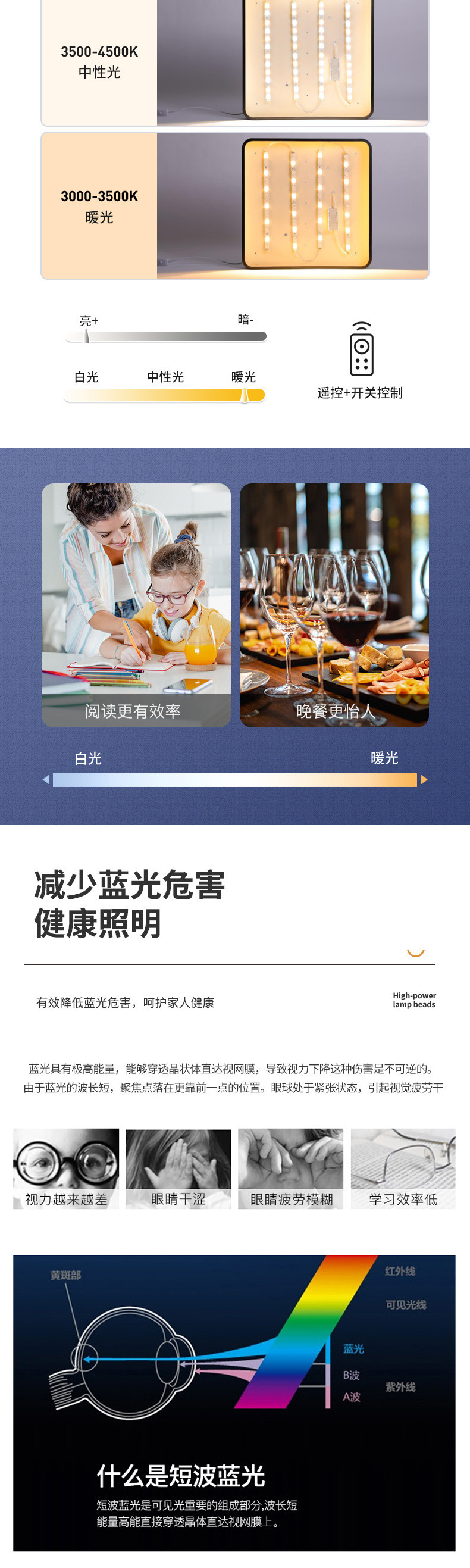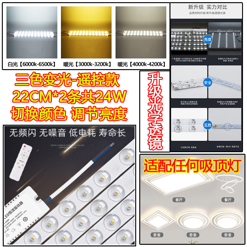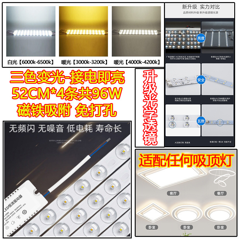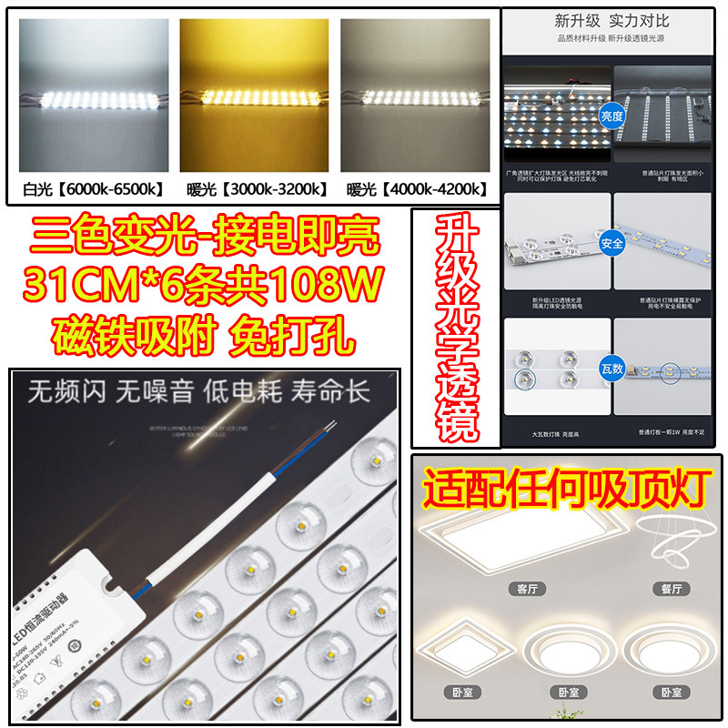 Jinhuan LED 천장 조명 심지 라이트 스트립 자기 흡입 가정용 교체 가능한 라이트 스트립 라이트 튜브 눈 보호 슈퍼 밝고 깜박임 없음