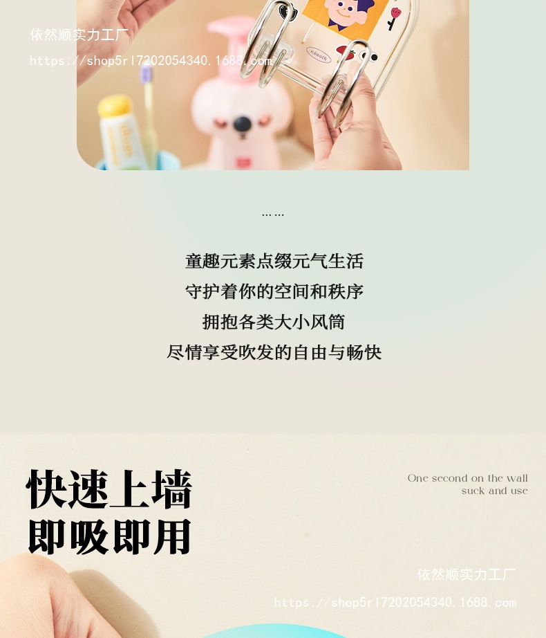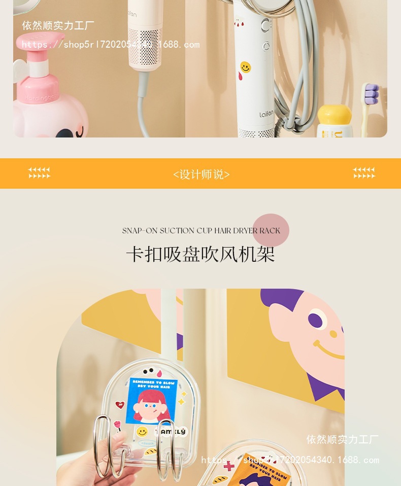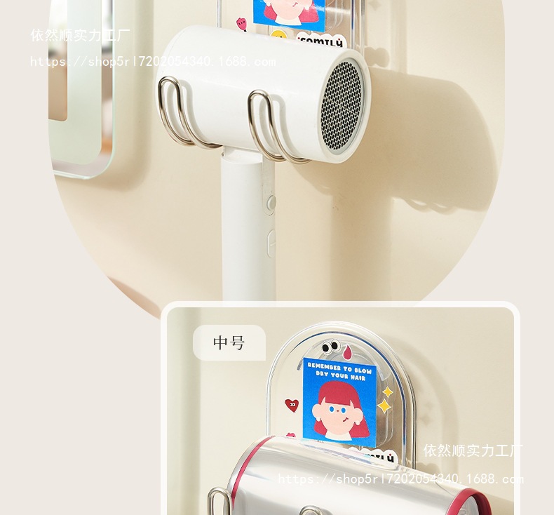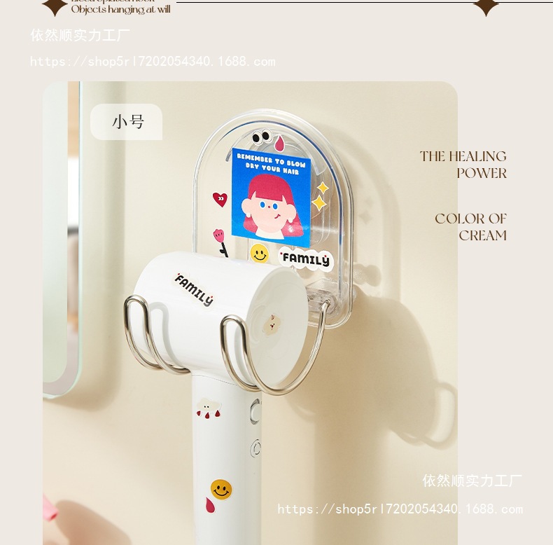 헤어드라이어 수납선반, 흡착판, 펀치프리, 벽걸이형 수납선반, 욕실용 헤어드라이어 수납선반