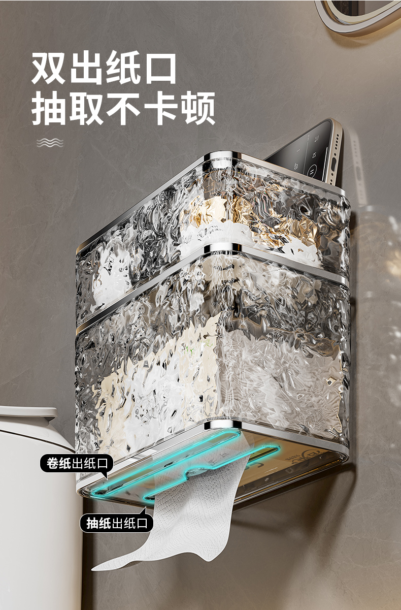 욕실 티슈 박스 벽걸이 형 방수 화장지 상자 화장실 펀치없는 롤 화장지 얼굴 수건 보관함