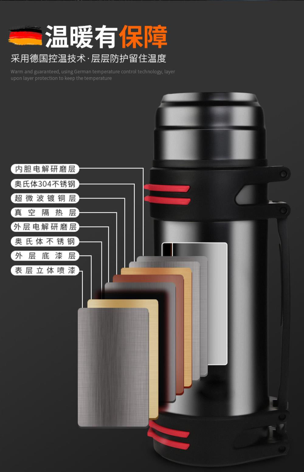 남성용 스테인레스 스틸 라이너 진공 전체 강철 절연 주전자 야외 여행 등산 휴대용 대용량 절연 컵