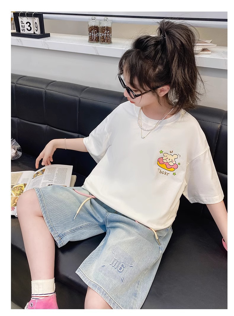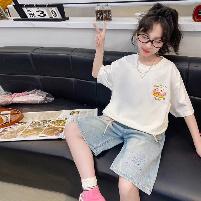 Zhongda 여자 여름 반팔 티셔츠 2025 새로운 스타일 여자 어린이 스타일 반팔 여름 탑 트렌디 브랜드 T스토어 가기