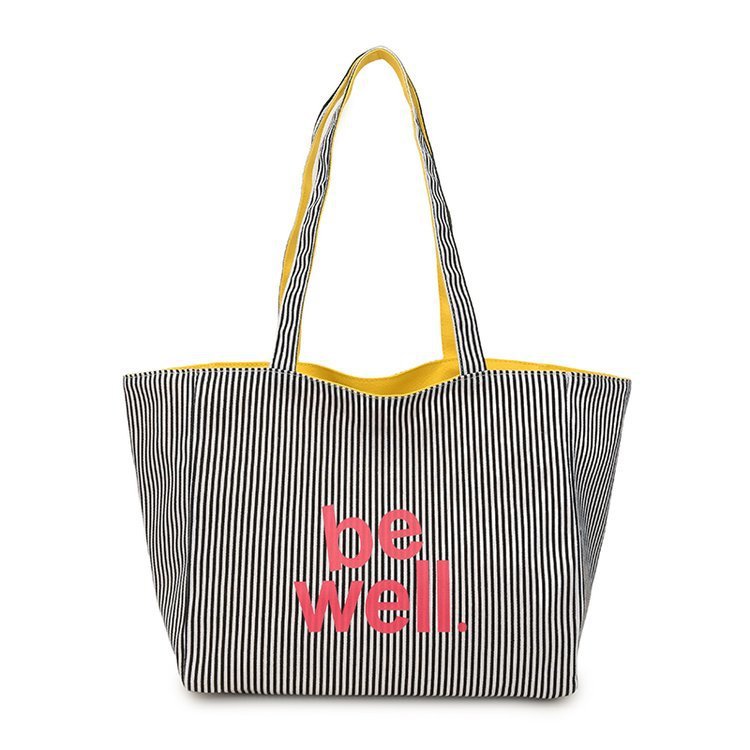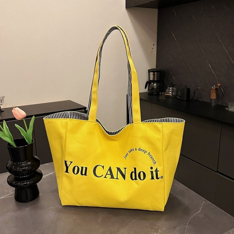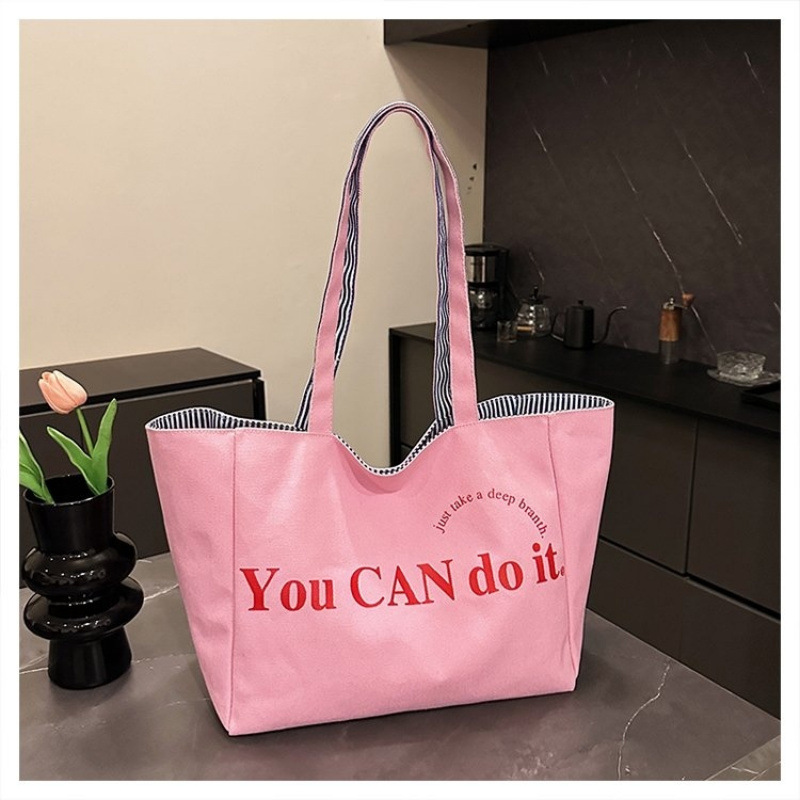 한국 줄무늬 문자 캔버스 대용량 숄더 토트 백 Ou Ruofeng 학생 클래스 통근 쇼핑백