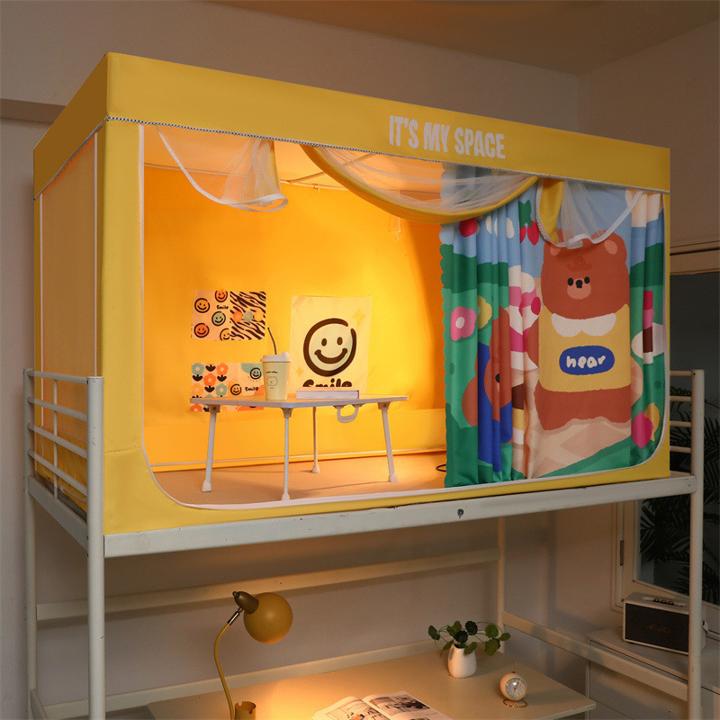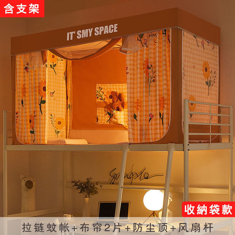 기숙사 학생 꽃무늬 침대 커튼 모기장 차광 일체형 지퍼 완전 밀폐형 이층 침대 여성 기숙사(스탠드 포함)스토어 가기