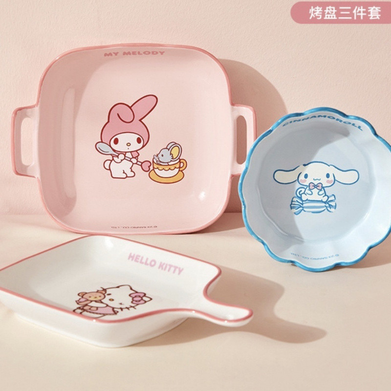 三丽鸥陶瓷双耳烤盘空气炸锅专用焗饭碗微波炉烤箱水果沙拉碗餐具