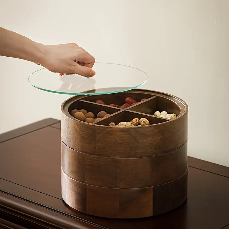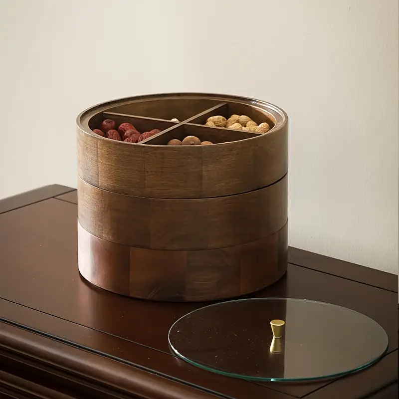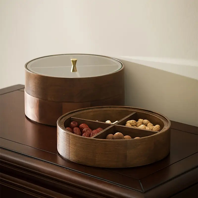 단단한 나무 말린 과일 접시 4각형 그리드 라이트 럭셔리 하이 엔드 새로운 중국 스타일 견과류 접시 2024 새로운 스낵 캔디 보관 상자