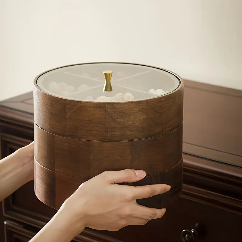 단단한 나무 말린 과일 접시 4각형 그리드 라이트 럭셔리 하이 엔드 새로운 중국 스타일 견과류 접시 2024 새로운 스낵 캔디 보관 상자스토어 가기