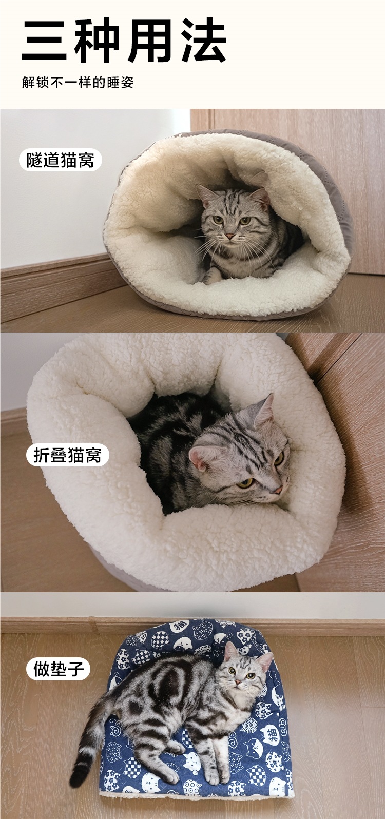고양이 침낭 터널 고양이 둥지 가을, 겨울 애완 동물 방한 매트 안전 이불 따뜻한 밀폐형 두꺼운 따뜻한스토어 가기