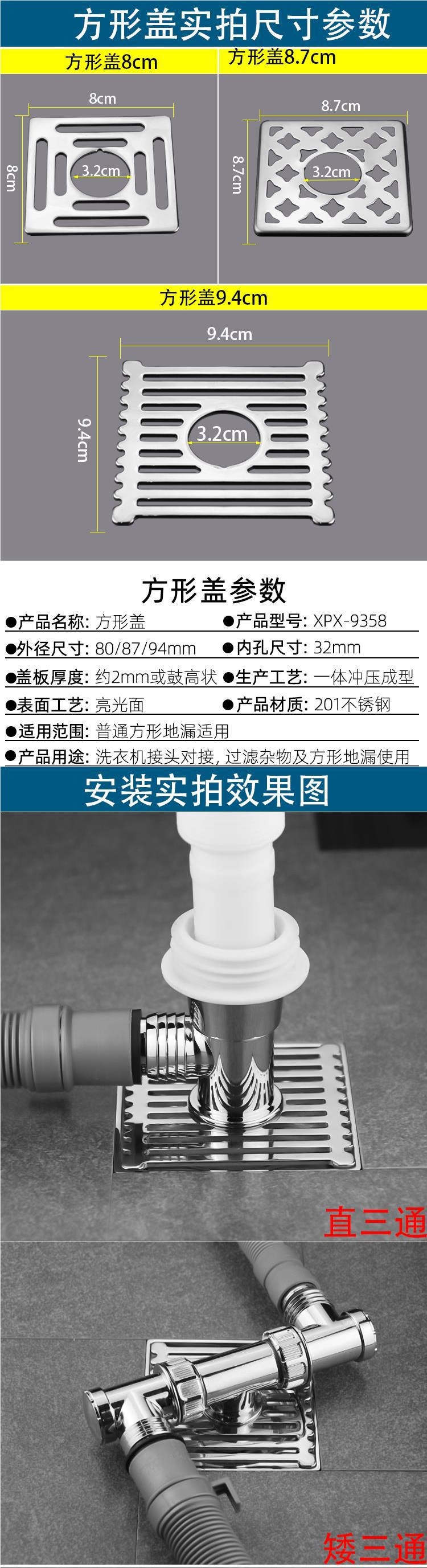 세탁기 배수관, 바닥 배수구, 하수관, 탈취 및 역방향 오버플로 방지 이중 목적 투인원 3방향 커버