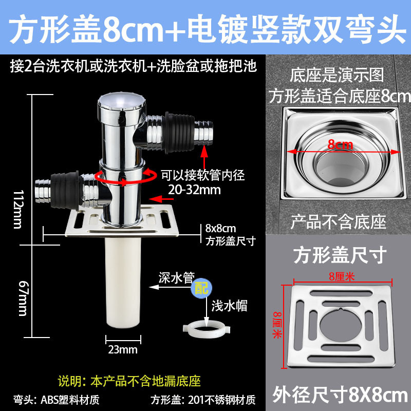 세탁기 배수관, 바닥 배수구, 하수관, 탈취 및 역방향 오버플로 방지 이중 목적 투인원 3방향 커버스토어 가기