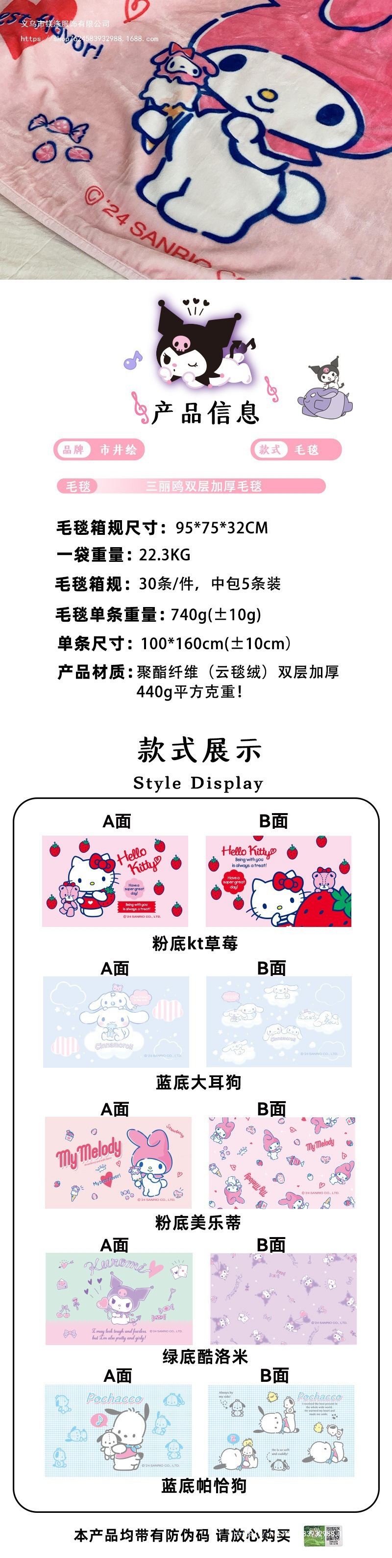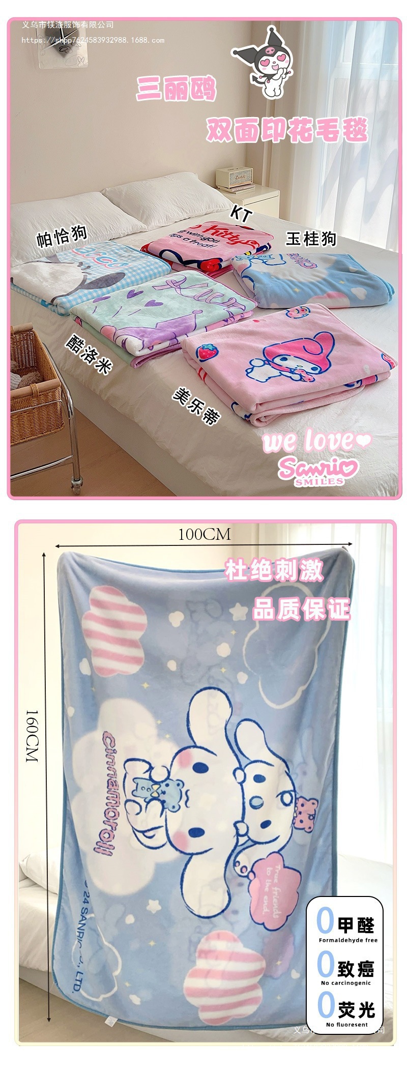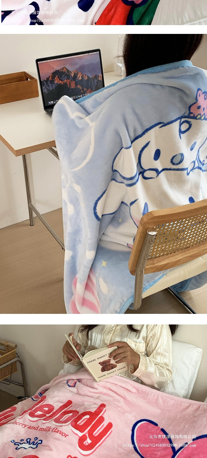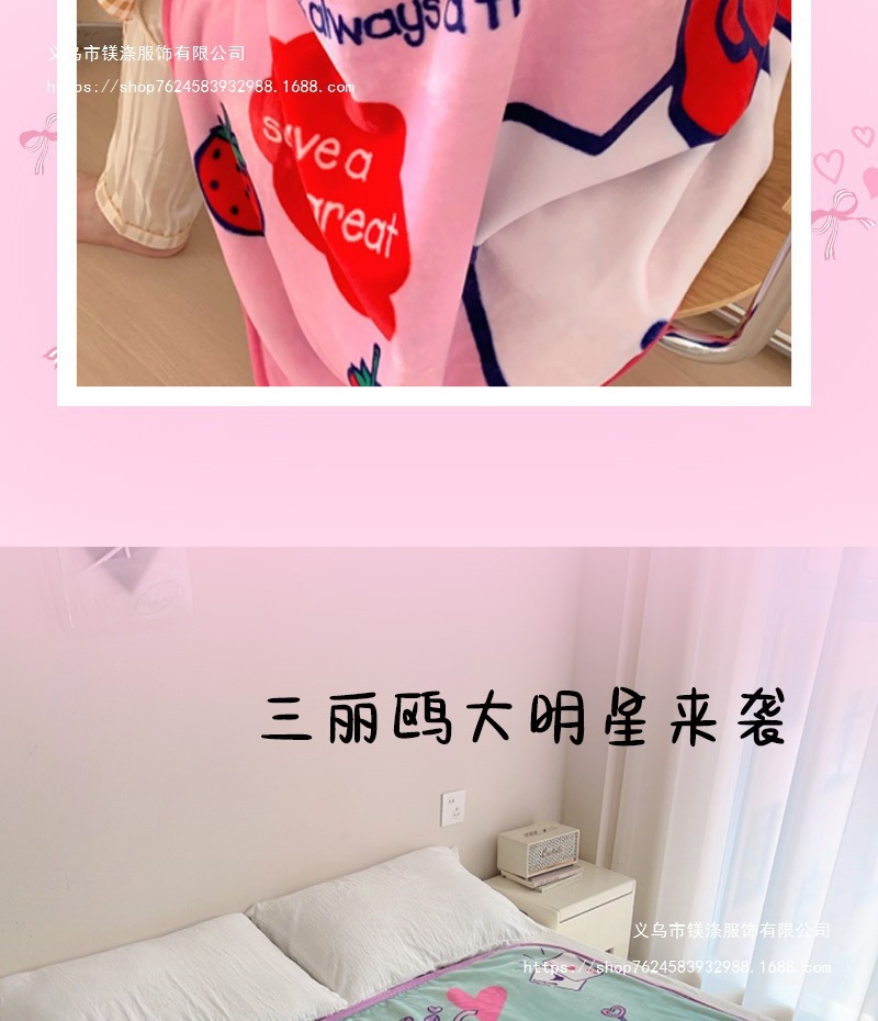 정품 산리오 담요 사무실 에어컨 담요 두꺼운 더블 플란넬 담요 낮잠 담요 어린이스토어 가기