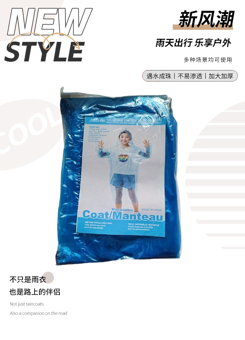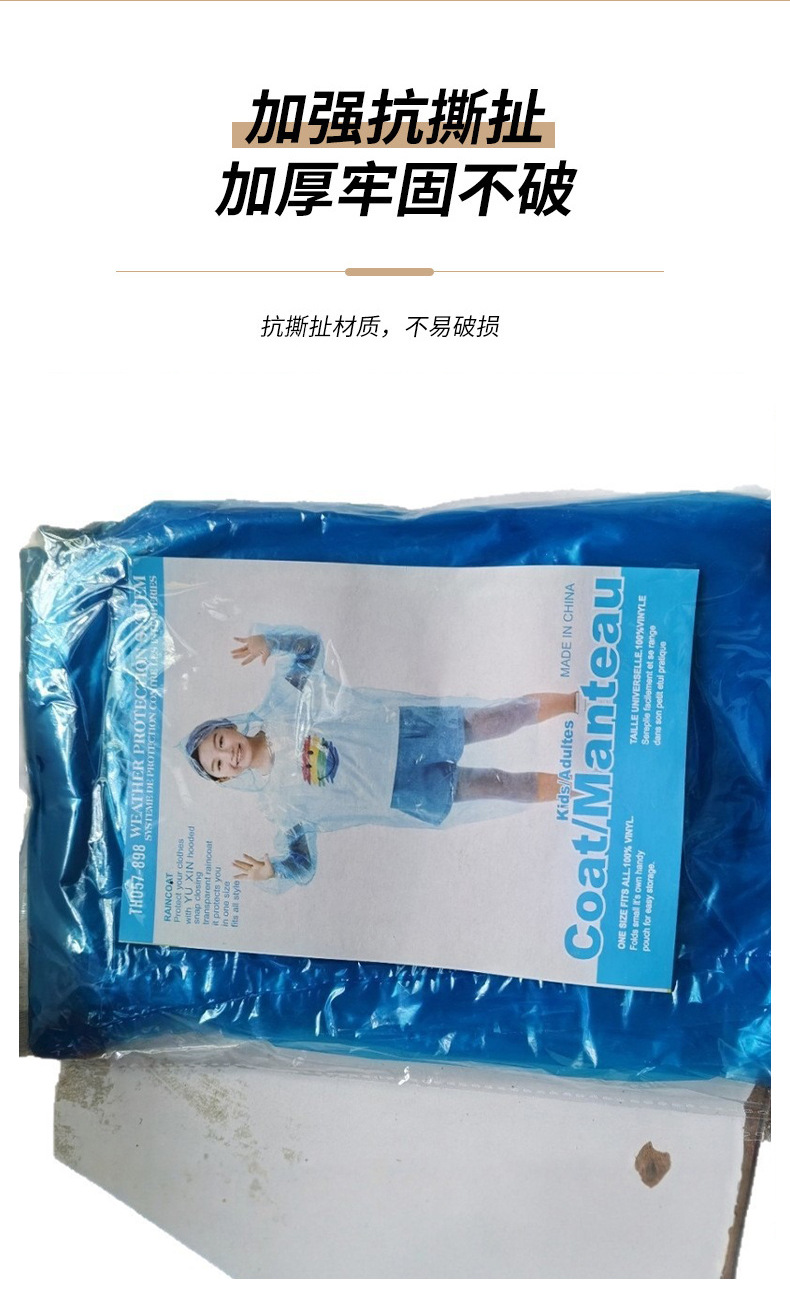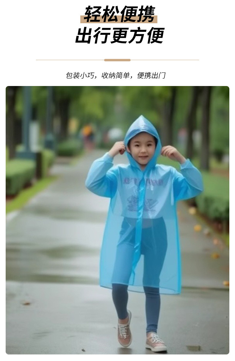 Pe 어린이 일회용 비옷 4버튼 후드 로프 휴대용스토어 가기