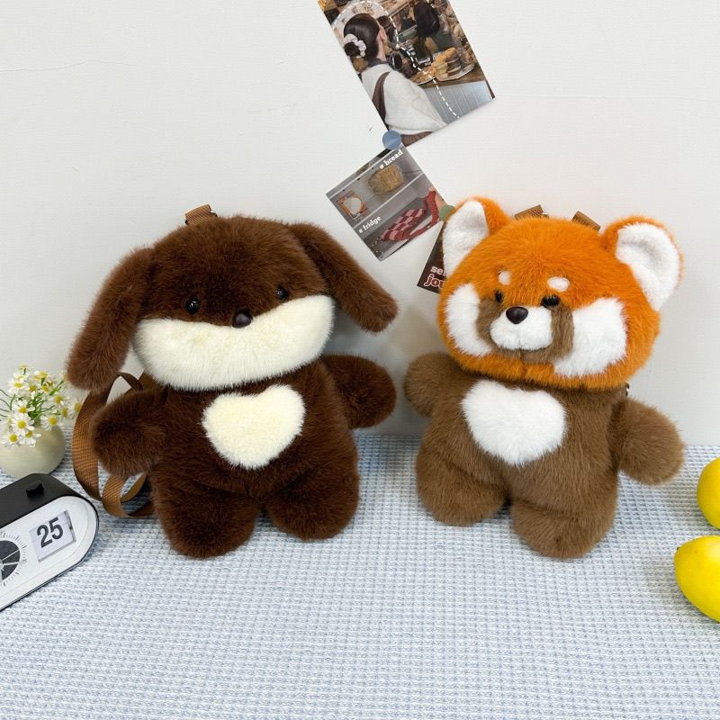 국경을 넘는 새로운 플러시 배낭, 귀여운 너구리 인형, 팬더 인형, 다재다능한 어린이 만화 인형 배낭스토어 가기