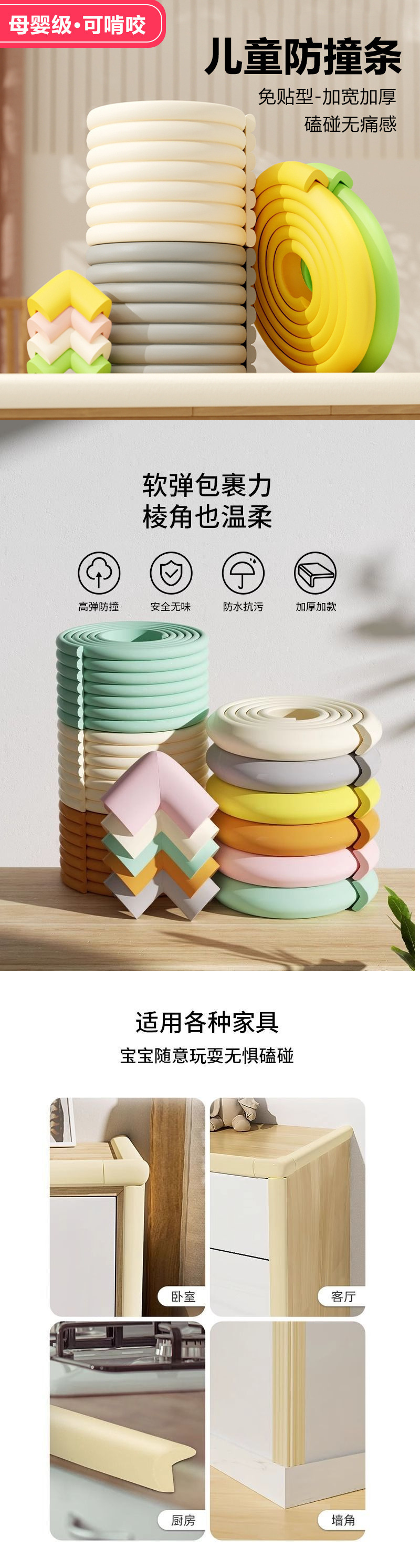 • [L자형 두꺼워진 스티커 없음] 충돌 방지 스트립 6m