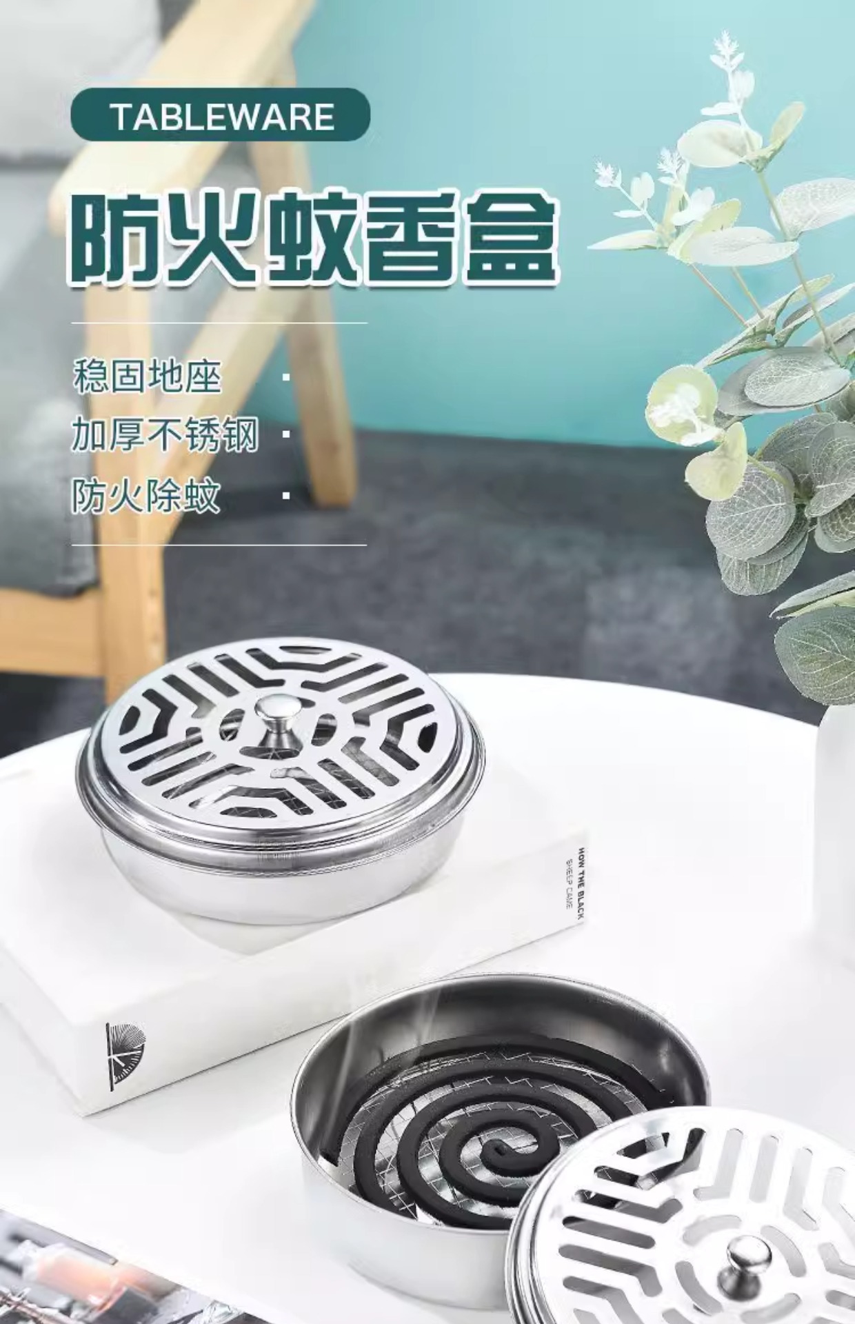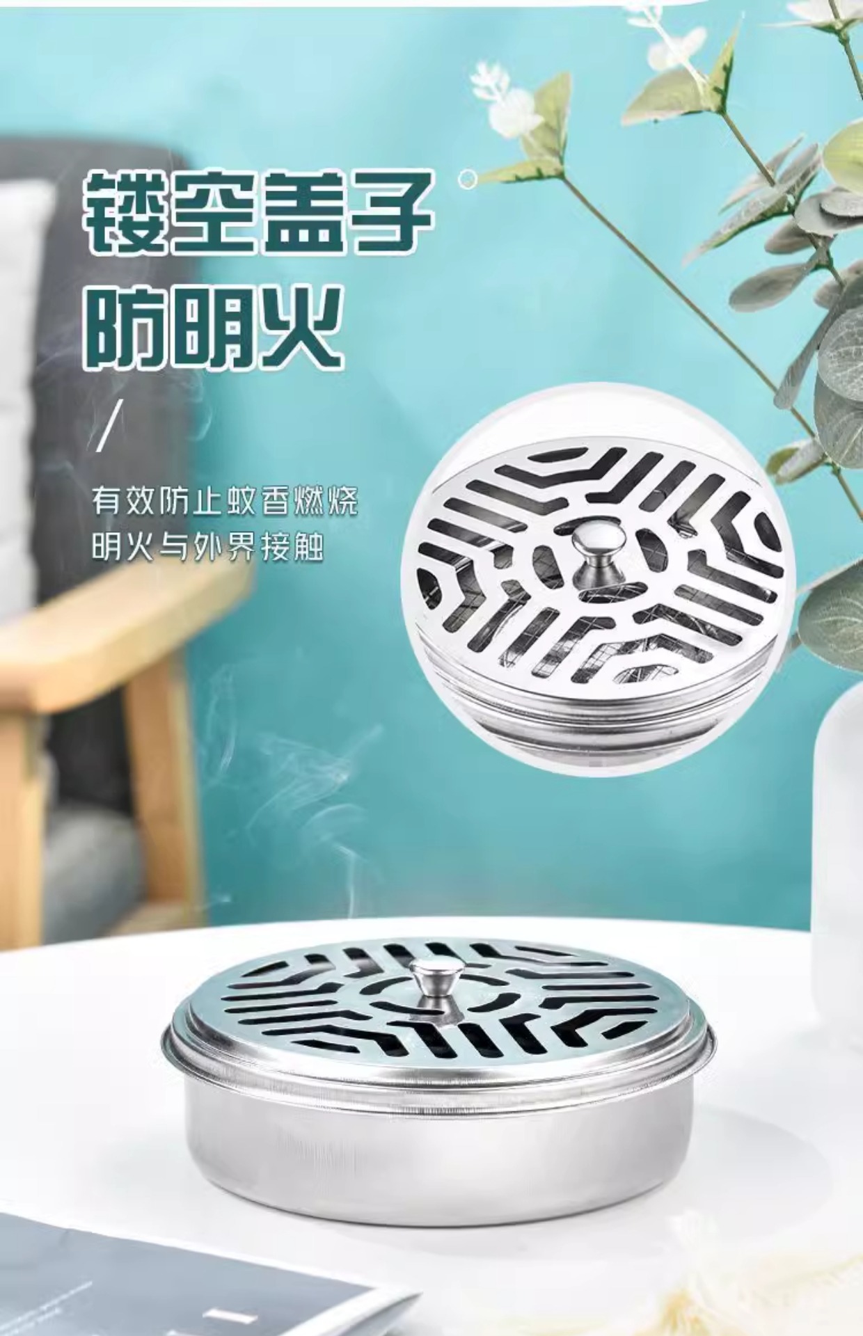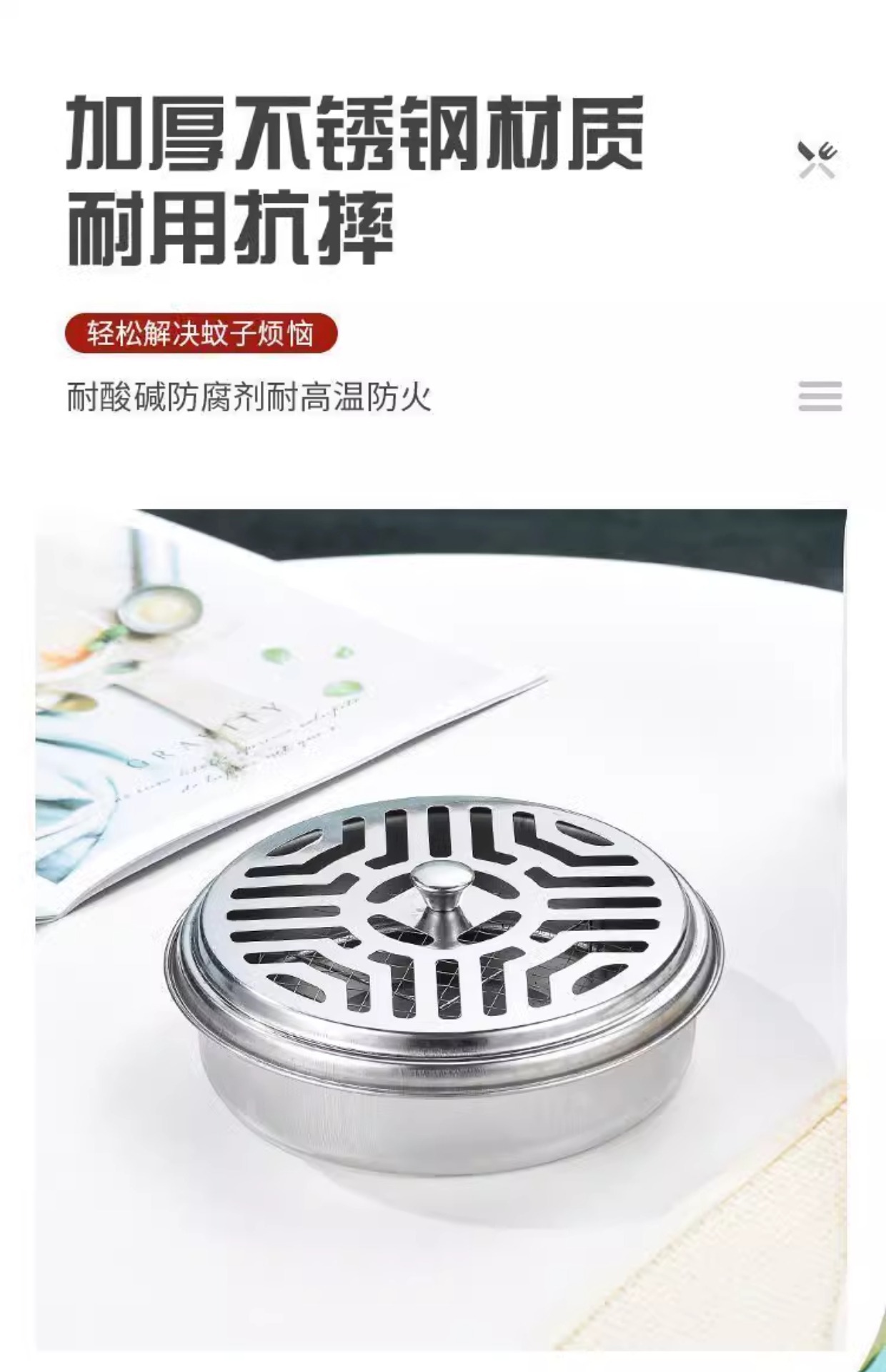 모기향 트레이 방화 스테인레스 스틸 모기향 트레이 휴대용 모기 구충제 모기향 트레이 야외 모기향 트레이 (뚜껑 포함)