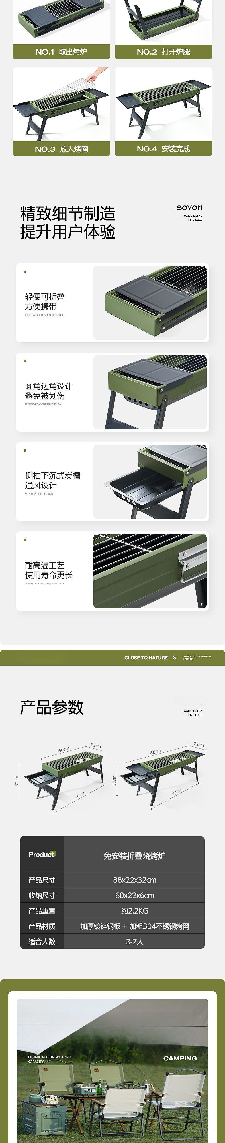 캠핑 그릴 강화 접이식 가정용 휴대용 숯 야외 저녁 식사 스토브 무연 바베큐 그릴 풀 세트스토어 가기