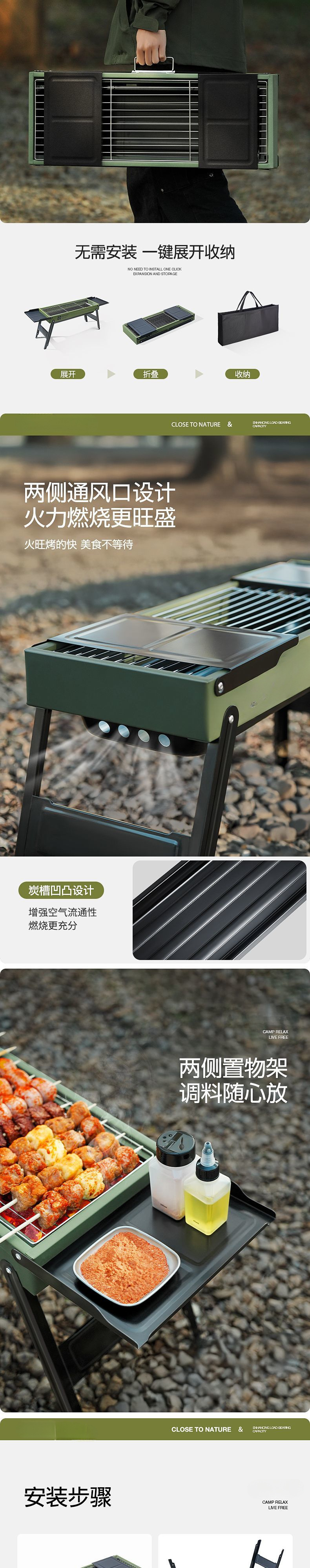 • [식품등급 304 그릴망] 무료 보관백 - 업그레이드된 두꺼운 이중 날개 접이식 스토브 + 8종 세트 + 숯 2.5kg개