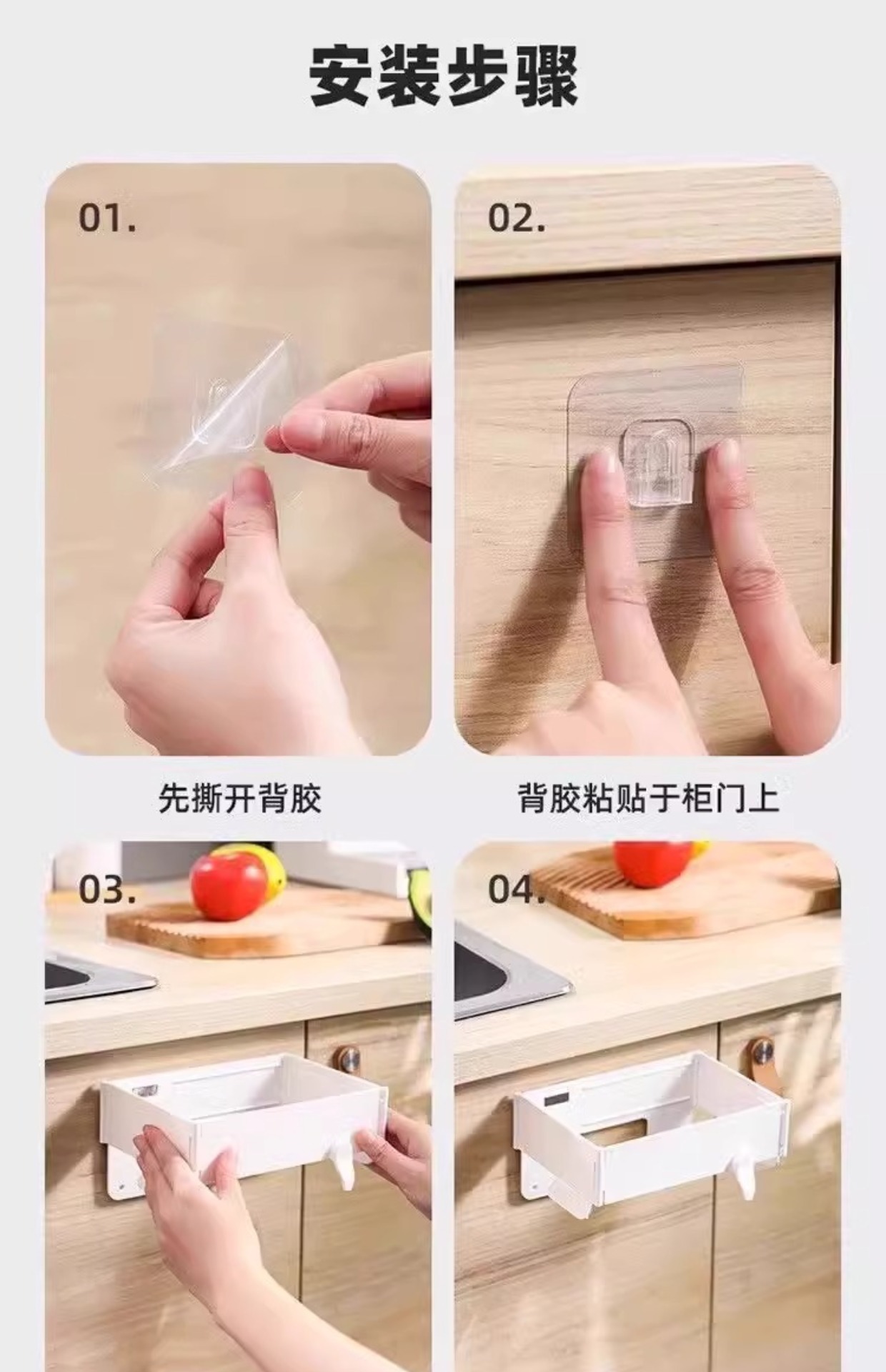 접이식 쓰레기통 욕실 쓰레기통 벽걸이 형 펀치없는 주방 다기능 보관 비닐 봉투 홀더