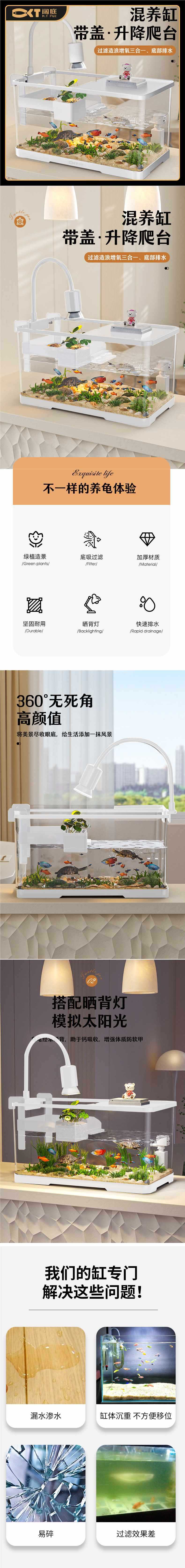 거북이 수조, 생태 조경, 리프팅 태양광 플랫폼, 소형 브라질 거북이 사육 상자, 가정용 혼합 양식 물고기 및 거북이 플라스틱 수조스토어 가기