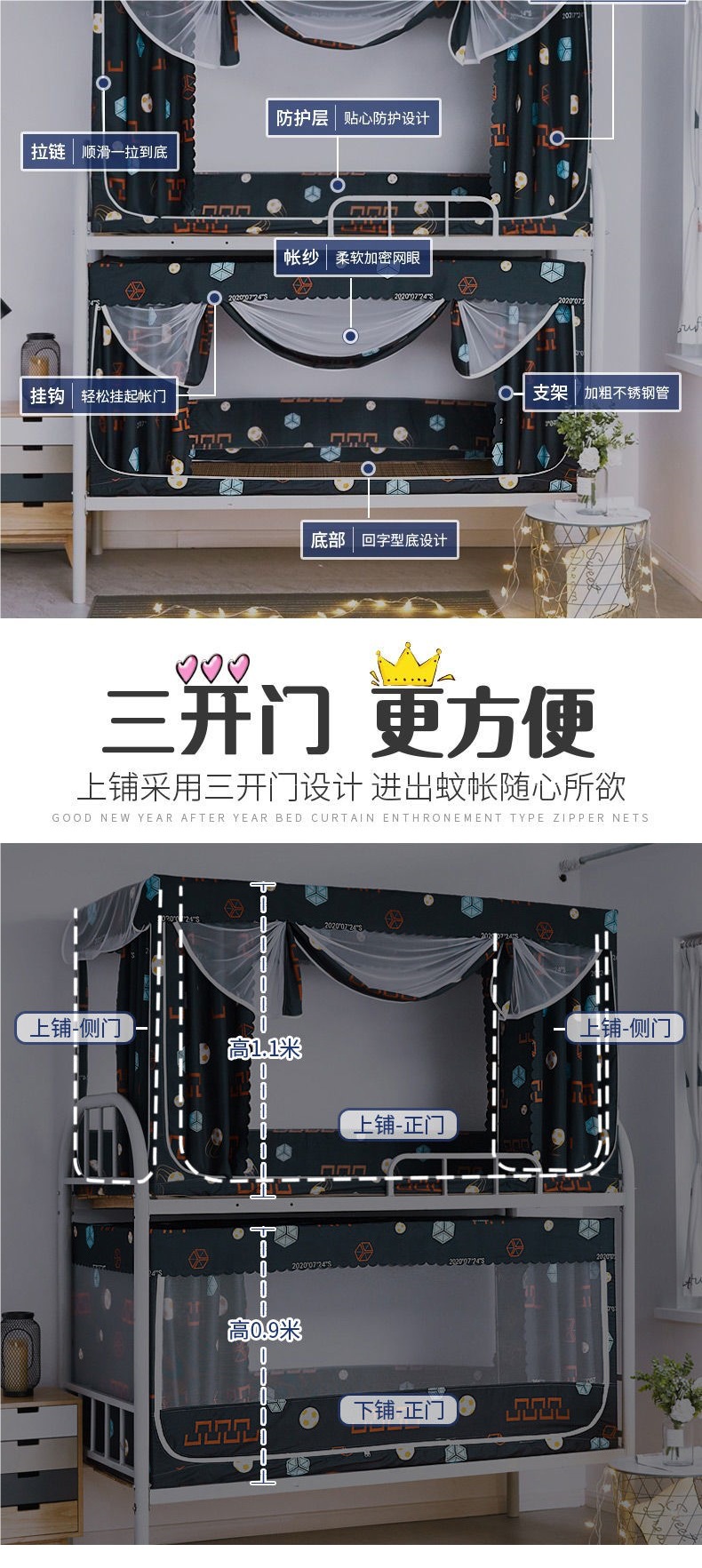 좋은 학생 기숙사 모기장과 침대 커튼이 하나로 통합된 차광 겸용 이층 침대, 싱글 침대, 이층 침대스토어 가기