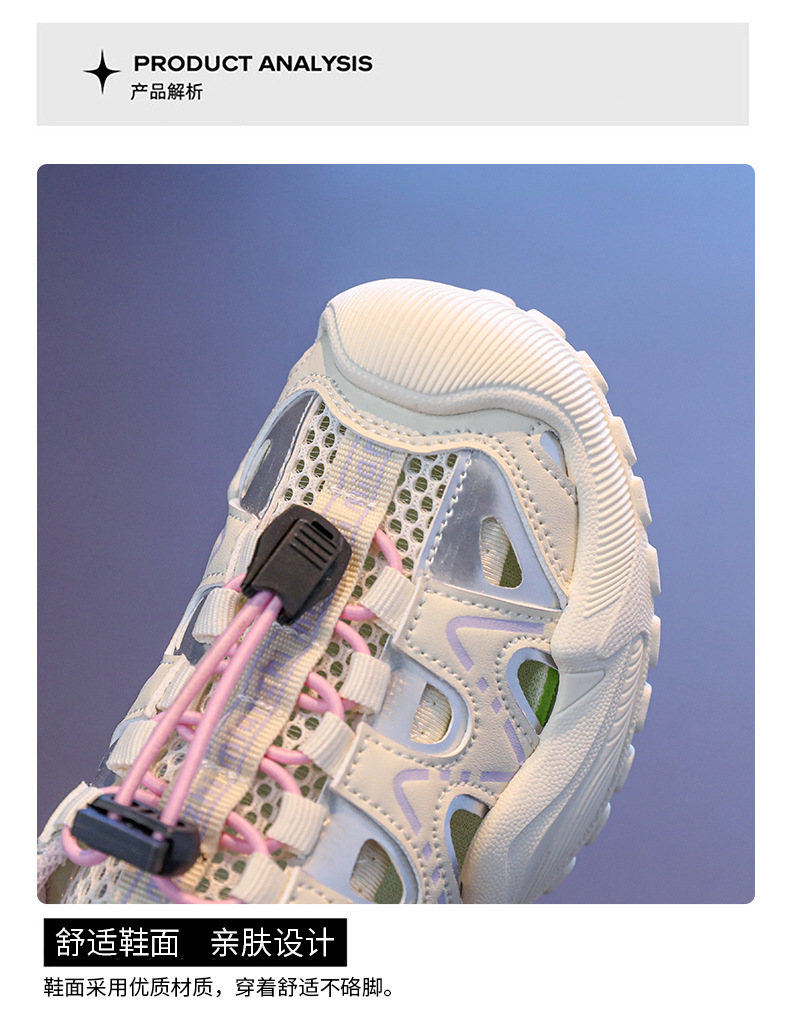 2025 봄 여름 신작 여아 발가락 샌들, 중대형 아동용 경량 운동화, 여아용 부드러운 밑창 여름 유행 신발