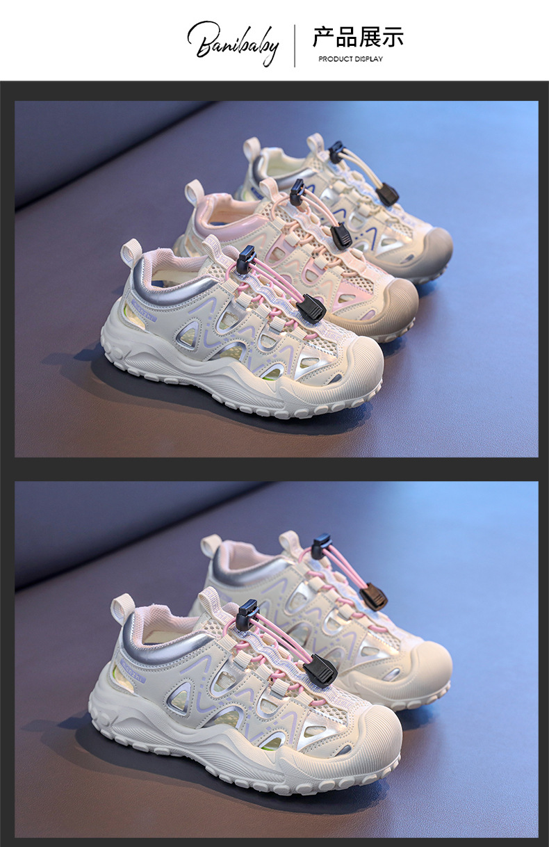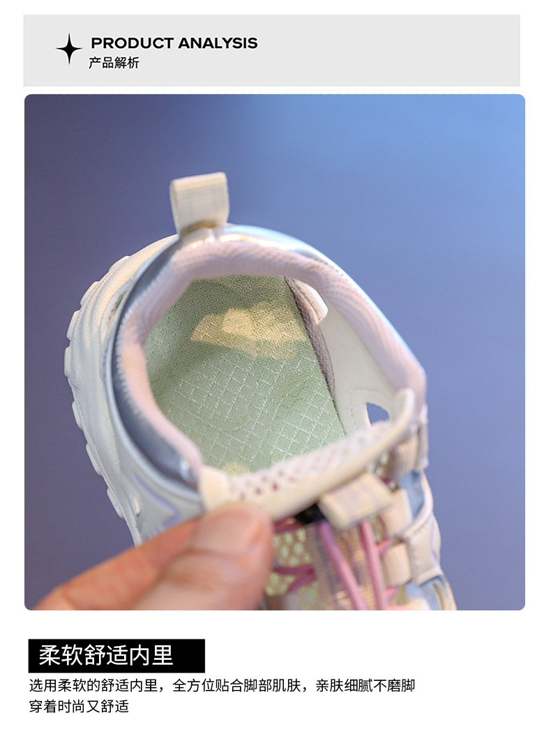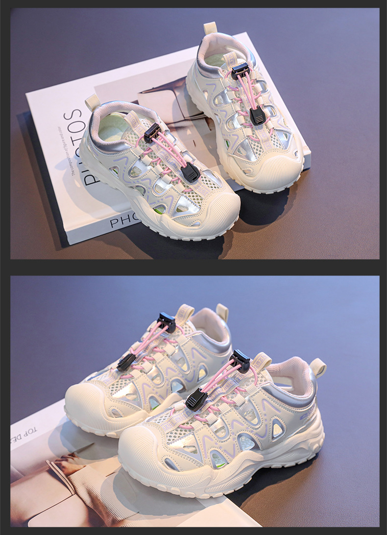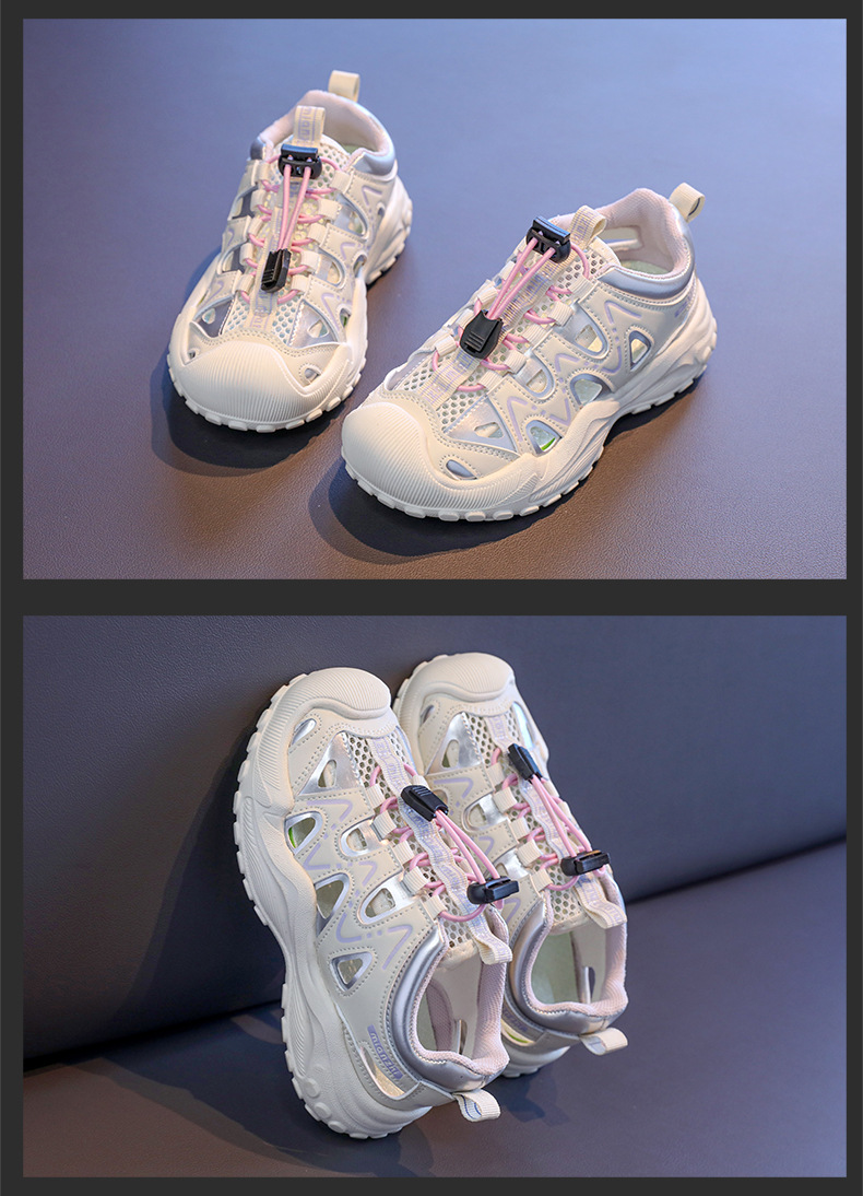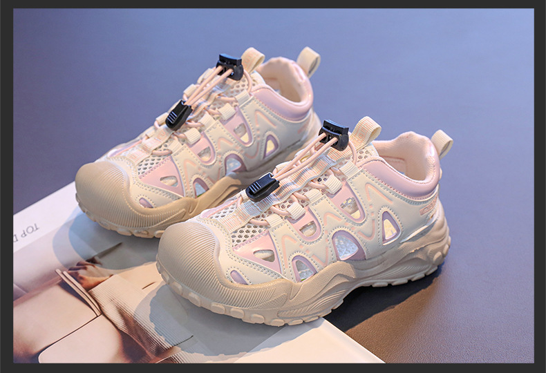 2025 봄 여름 신작 여아 발가락 샌들, 중대형 아동용 경량 운동화, 여아용 부드러운 밑창 여름 유행 신발스토어 가기