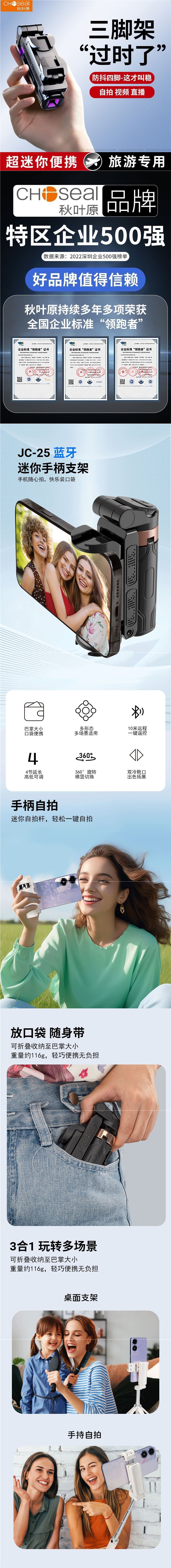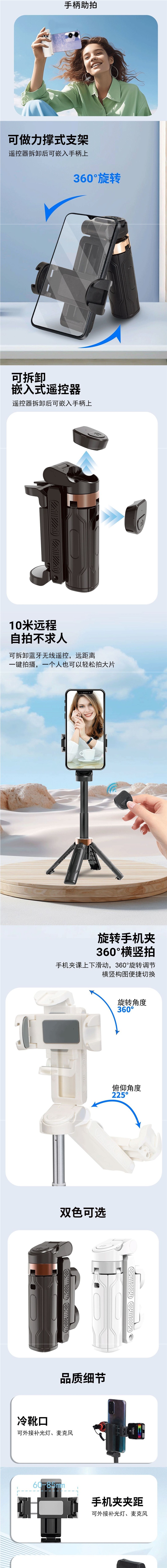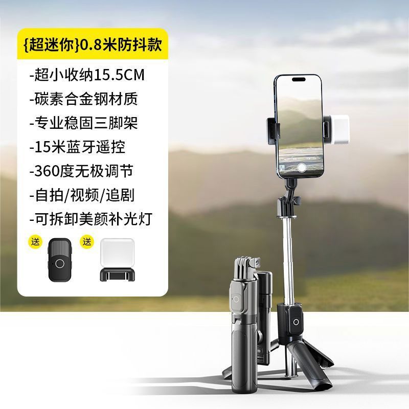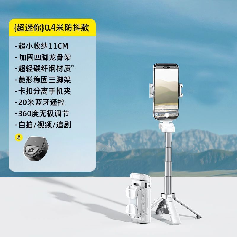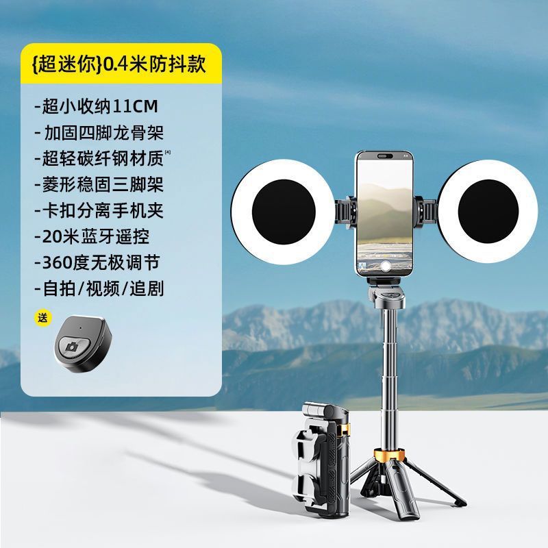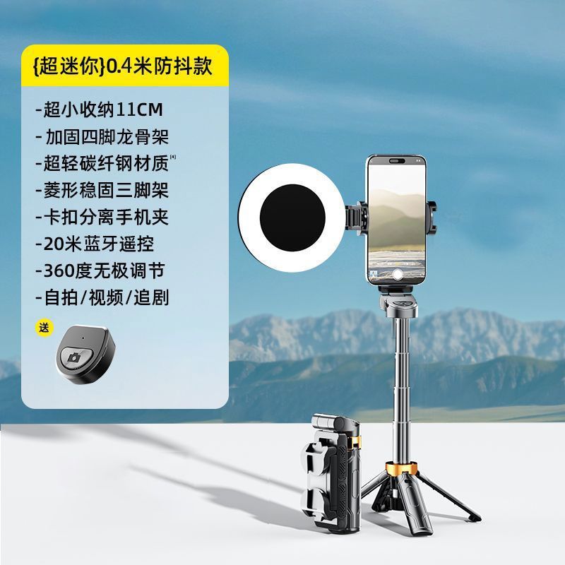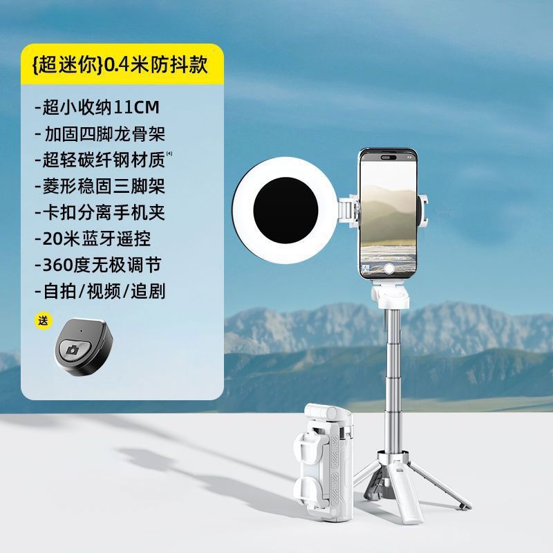 • 슈퍼 미니 휴대용 - 황금 높이 [Qiongluobai] 항공 알루미늄 합금 - [이중 조명 모델] 숨겨진 4각 스탠드/블루투스 촬영/촬영 보조