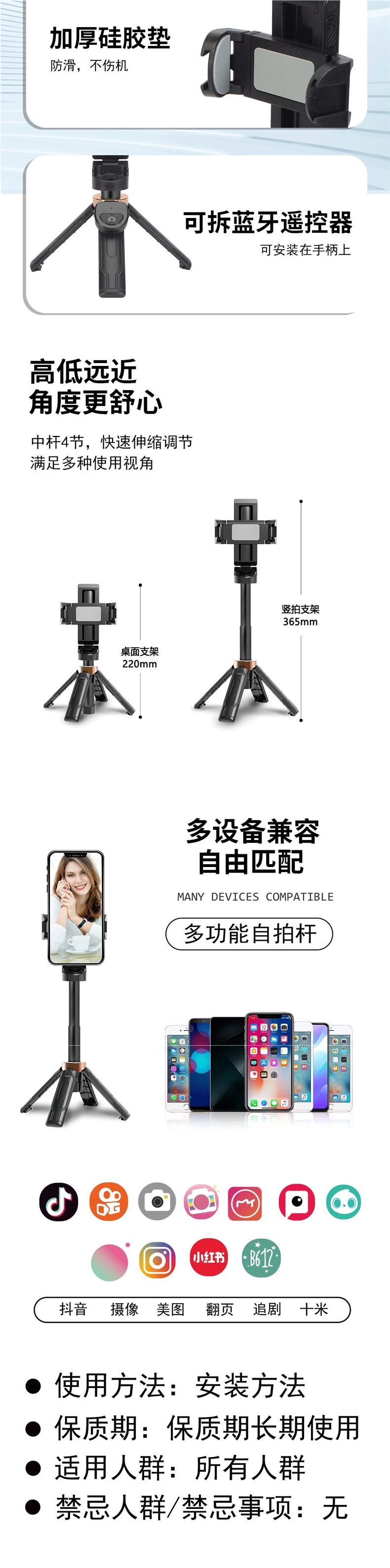 아키하바라 휴대용 4각 삼각대 3-in-1 셀카봉 야외 휴대용 사진 접이식 스트레칭 수평 및 수직 블루투스 사진