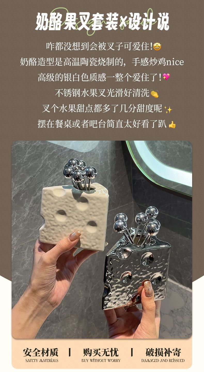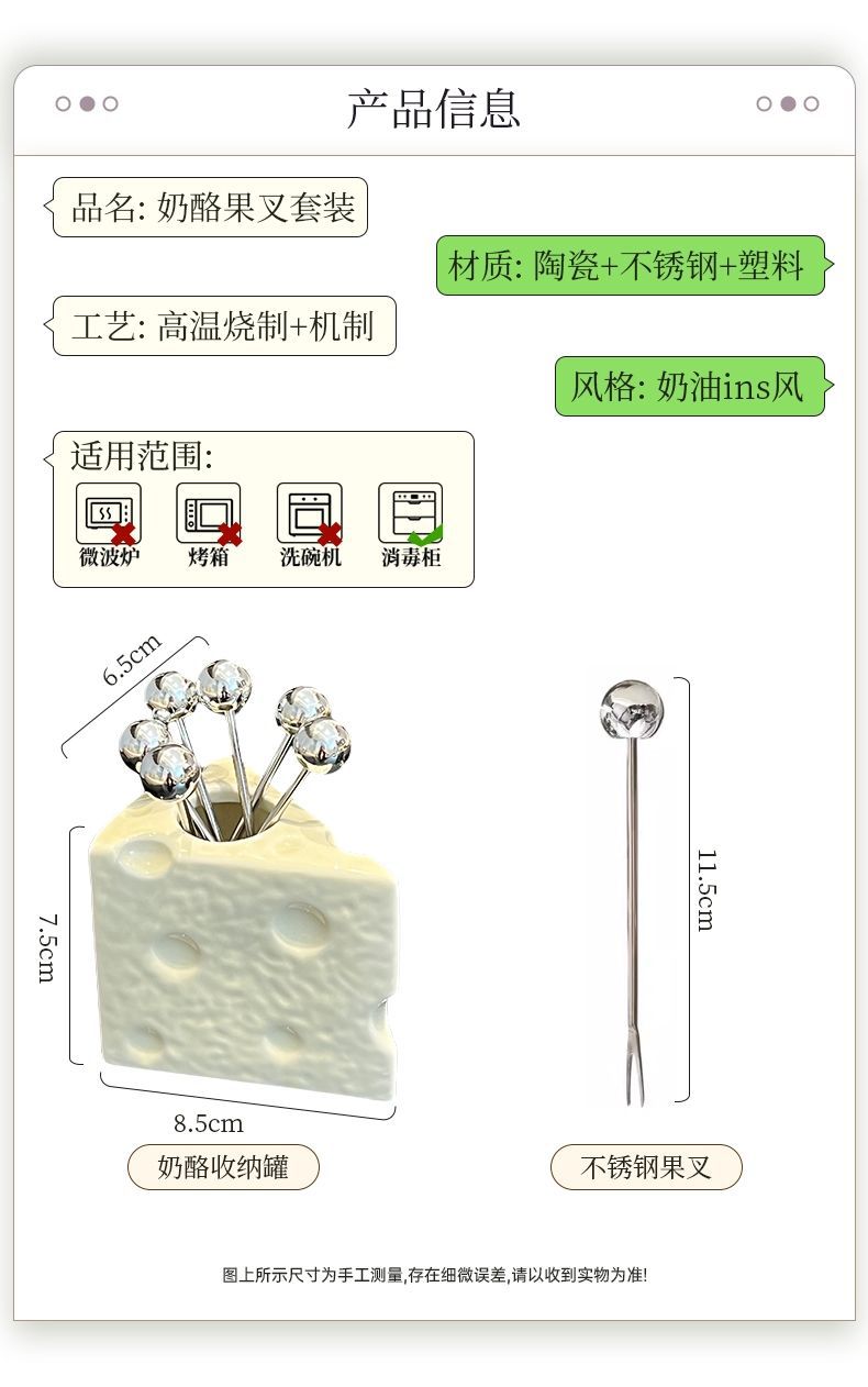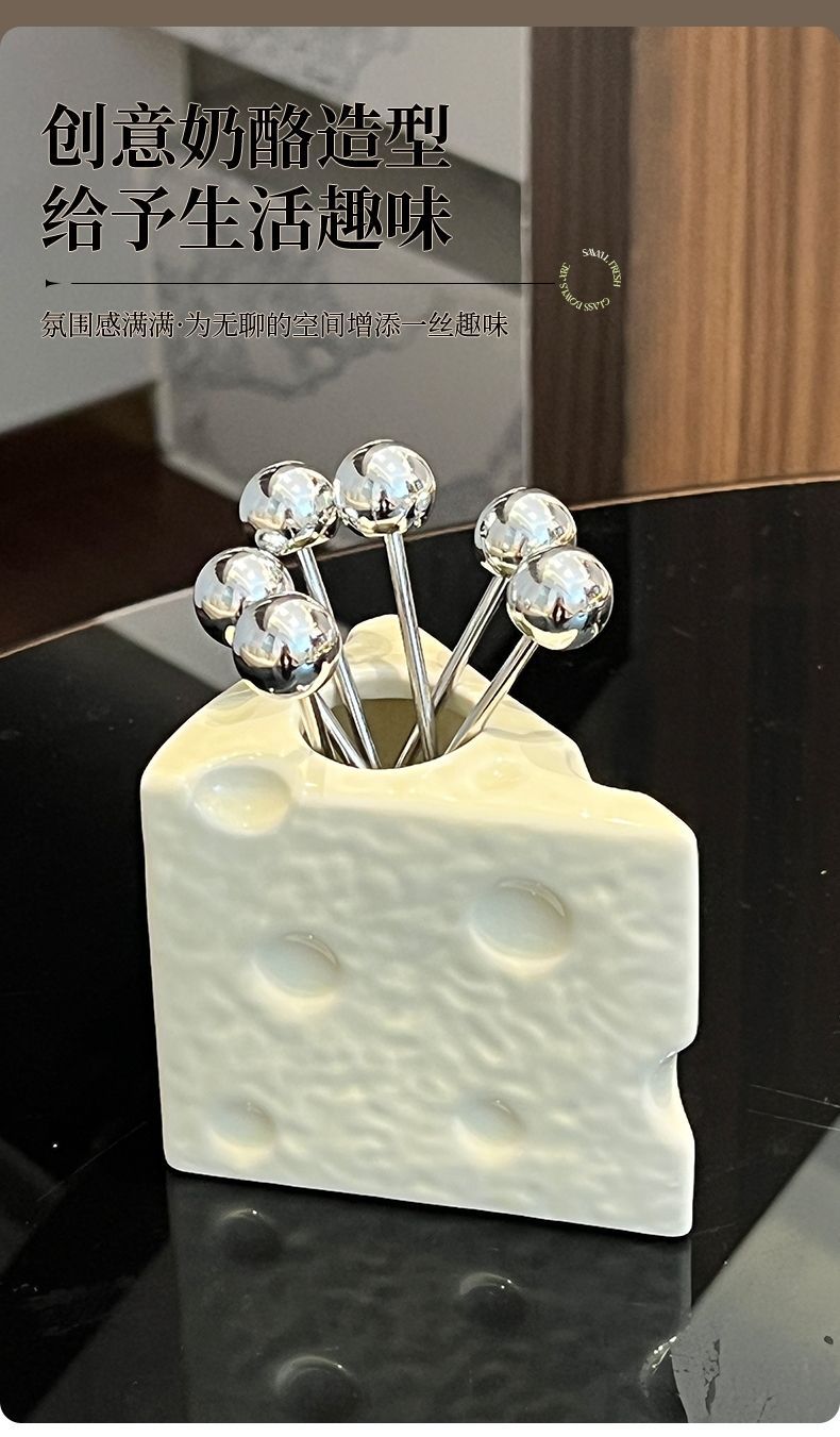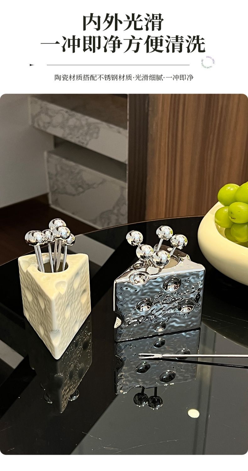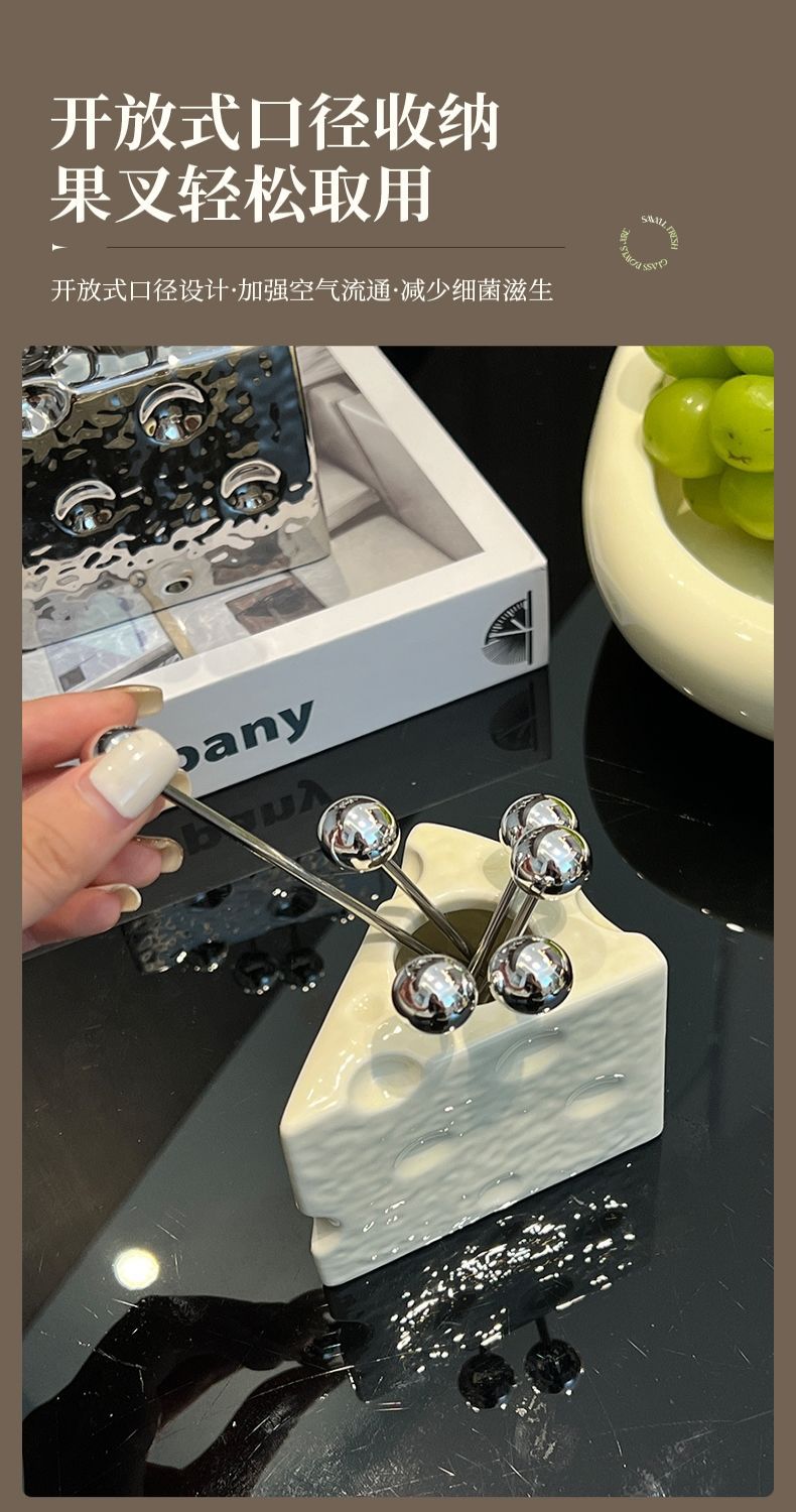 과일 포크 고급스러운 인스 세라믹 치즈 항아리 볼 포크 보관 세트 스테인레스 스틸 과일 포크스토어 가기