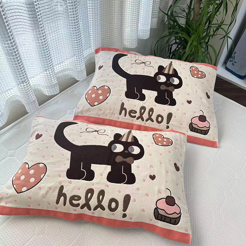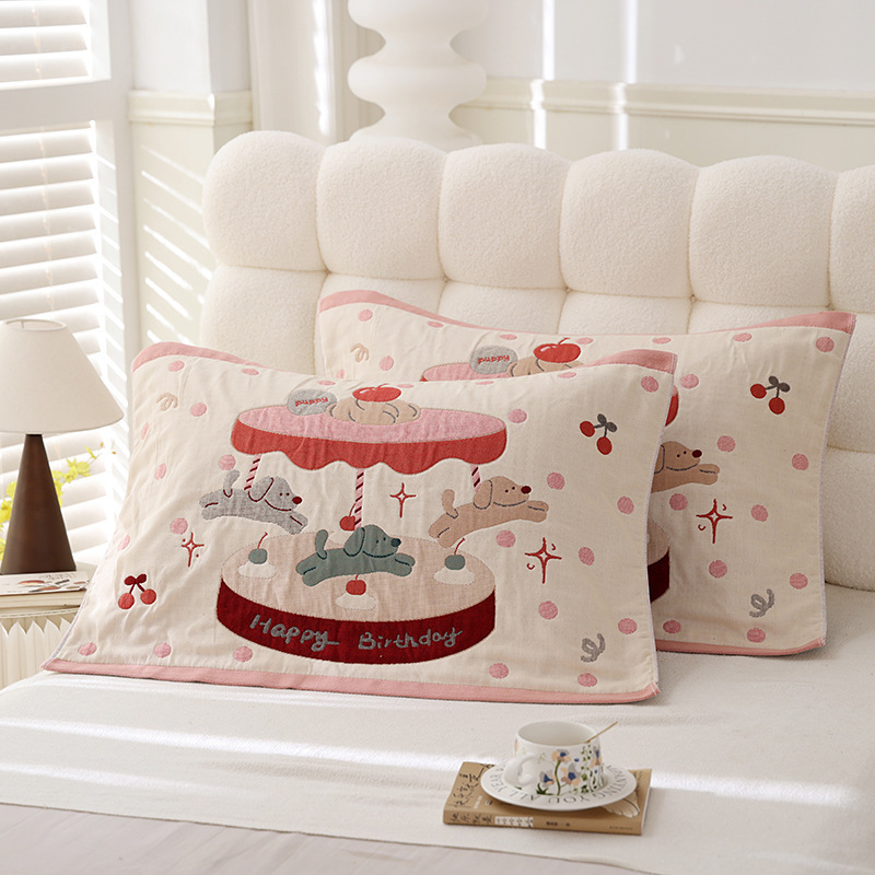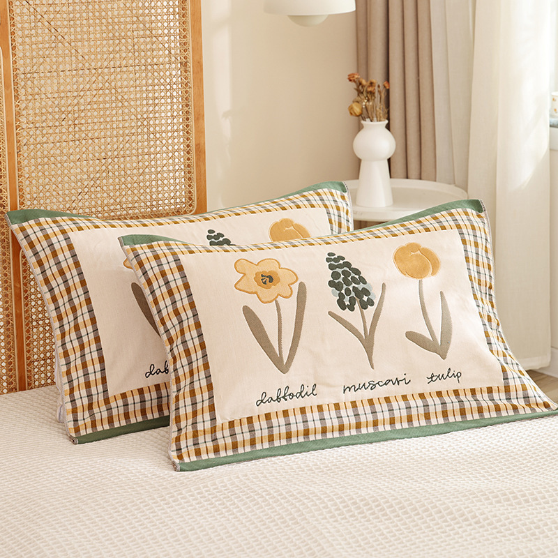 순면 베개 커버, 8겹 거즈, 성인용 두꺼운 베개 커버 한 쌍, 사계절 학생 커플 커버스토어 가기