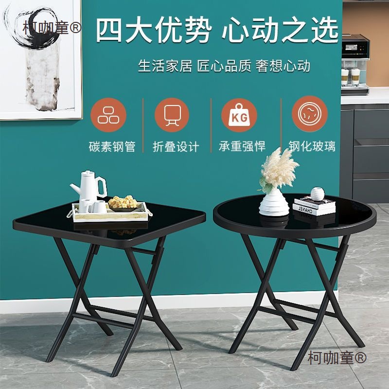 접이식 사각 테이블, 가정용 소형 식탁, 식탁, 강화유리, 야외 안뜰 발코니, 인터넷 연예인 디스플레이 Metabo