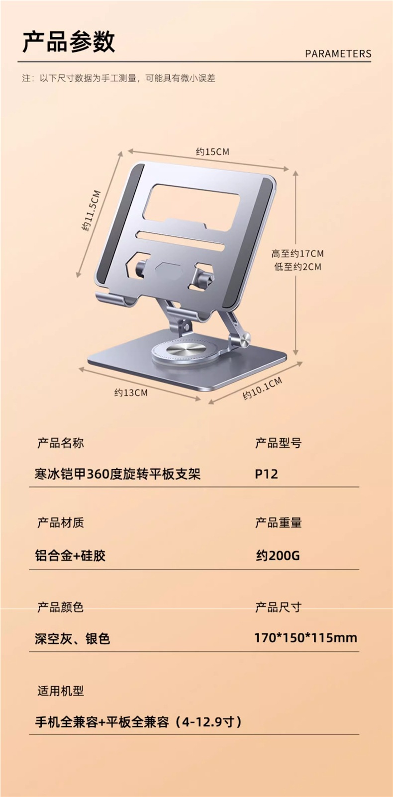 • [휴대폰 및 태블릿용 범용 모델] 스페이스 그레이 [회전 가능]◉접을 수 있는◉매우 안정적입니다.]