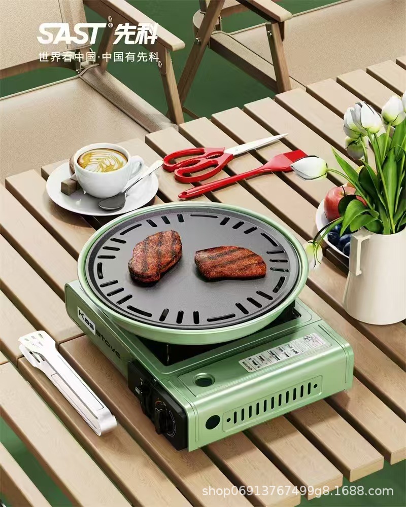 Xianke 야외 카세트 스토브 그릴 세트 휴대용 무연 한국 바베큐 플레이트 홈 캠핑 국경 간 선물