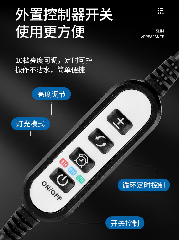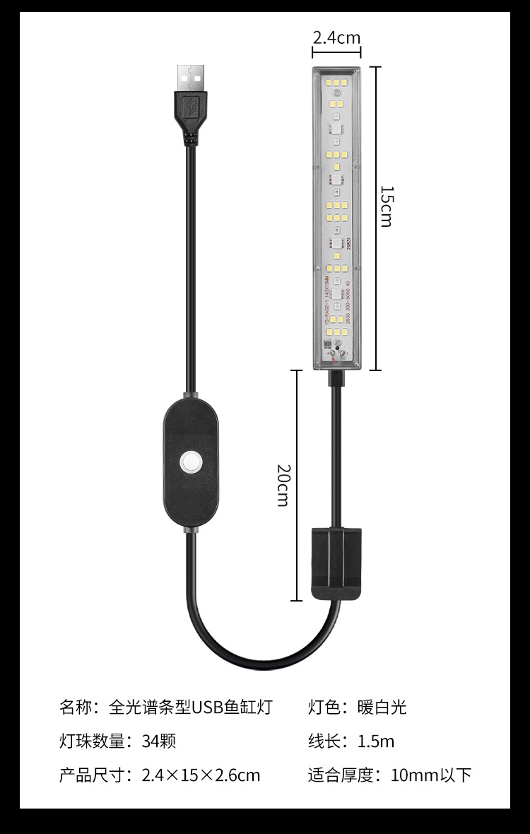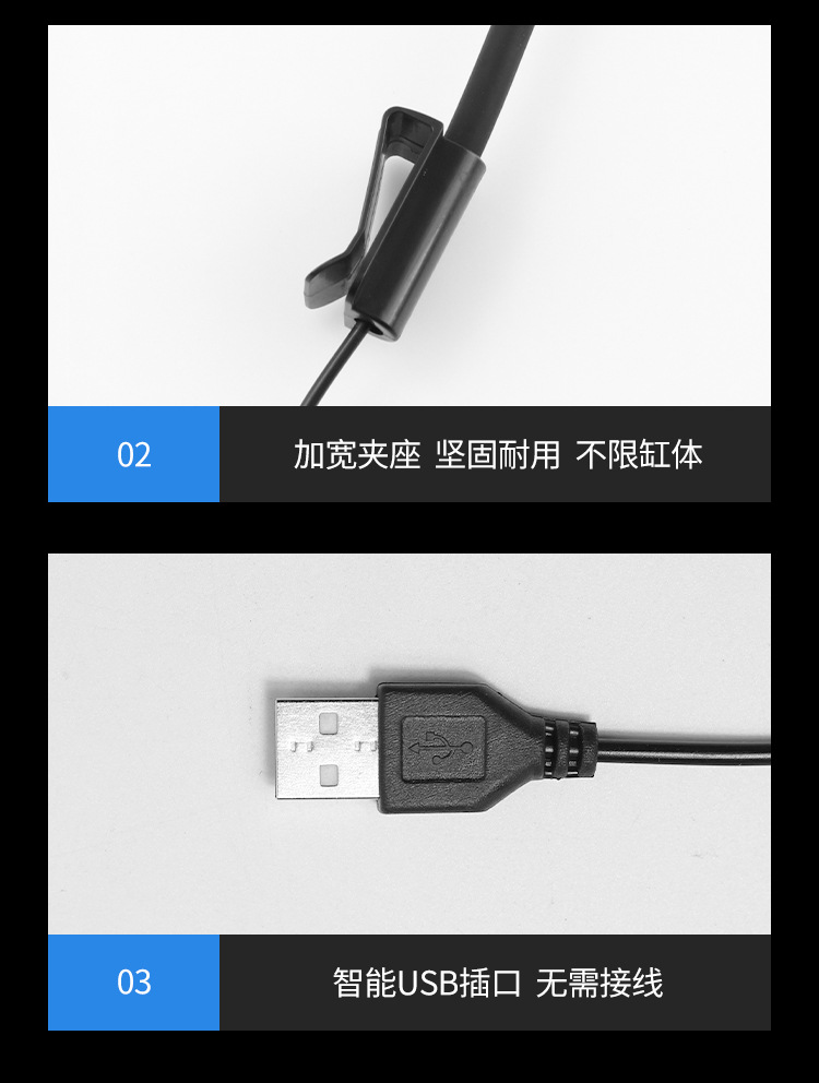 • 측면 수조 조명 - 단일 제어 스위치 + USB 플러그