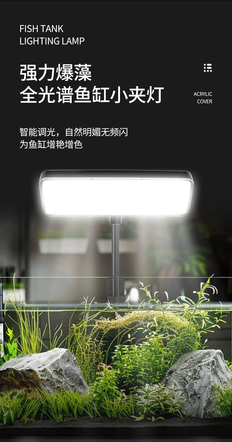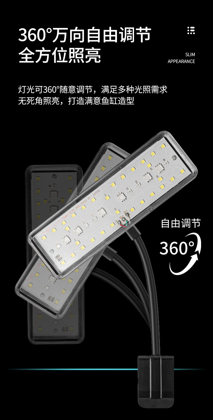 새로운 타이밍 사이클 LED 수조 조명 RGB 수생 식물 조명 360도 회전 클립 조명 수생 식물 조명 전체 스펙트럼