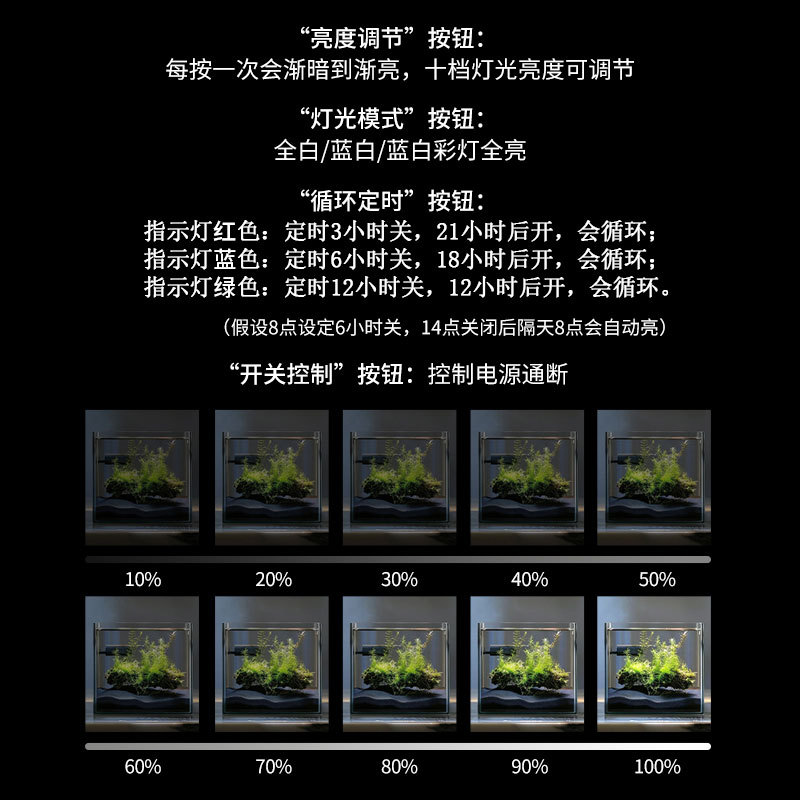 • 측면 수조 조명 - 시간에 따른 조광 + USB 플러그