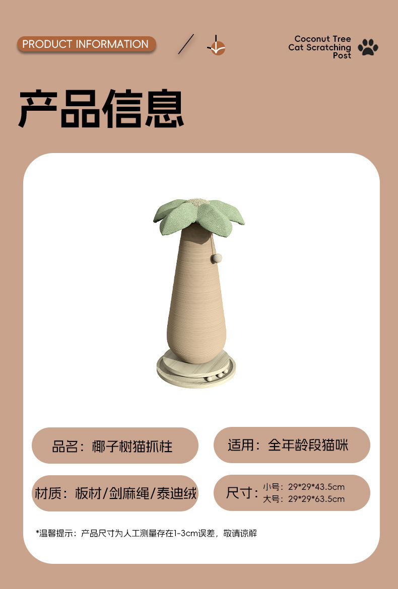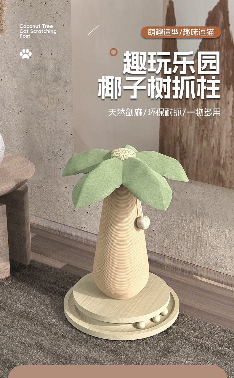 새로운 코코넛 나무 고양이 스크래치 컬럼 고양이 클라이밍 프레임 사이잘 고양이 장난감 지루함을 완화하는 애완 동물 용품 공장 다기능 장난감스토어 가기