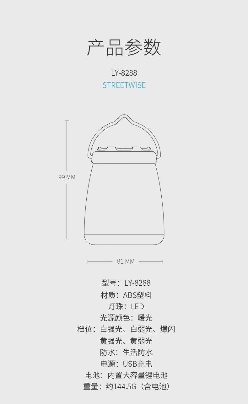 • LY-8223B 따뜻한 빛 캠핑 램프 [2400mAh 충전식 리튬 배터리 내장]