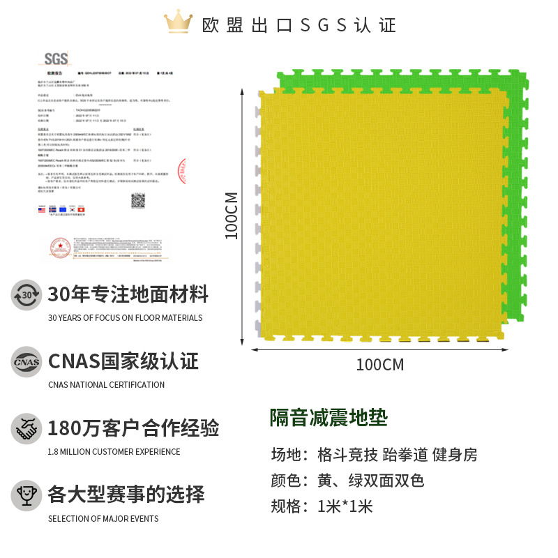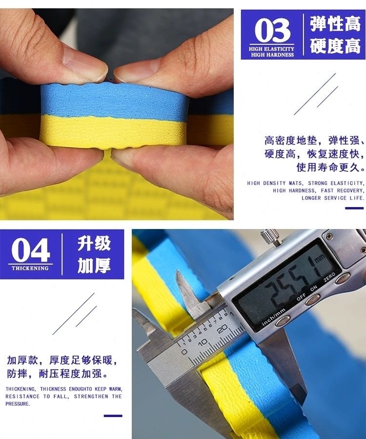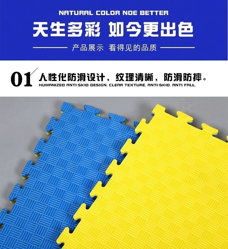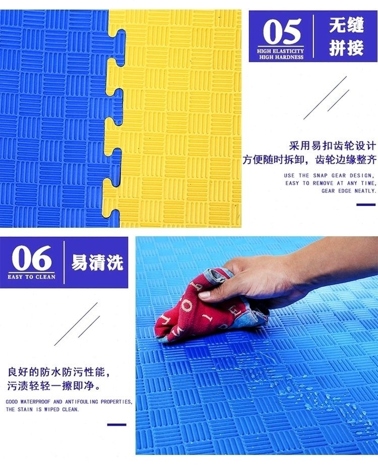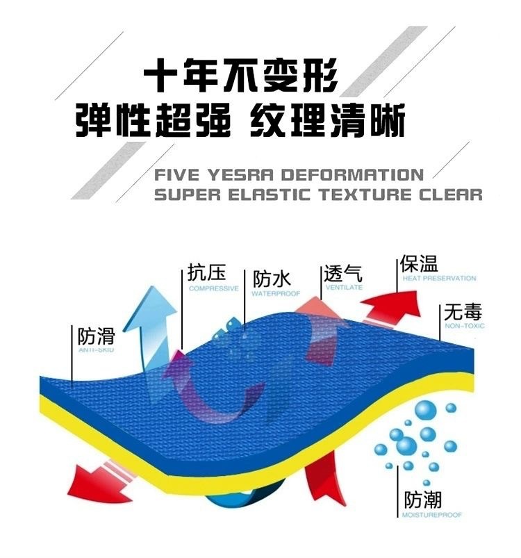 三、垫子是塑料颗粒经高温发泡而成,是有轻微味道的,铺上后通风几天基本就闻不到了,任何厂家都是这样,可放心使用。