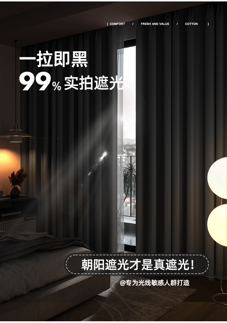 2025 새로운 커튼 완전 차광 침실 베드 창 후크 유형 슈퍼 단열 태양 보호 및 빛 차단 천 블랙스토어 가기