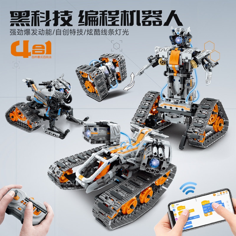 블랙 테크놀로지 Wali 프로그래밍 로봇 빌딩 블록 원격 제어 전기 어린이 조립 장난감 소년에게 적합