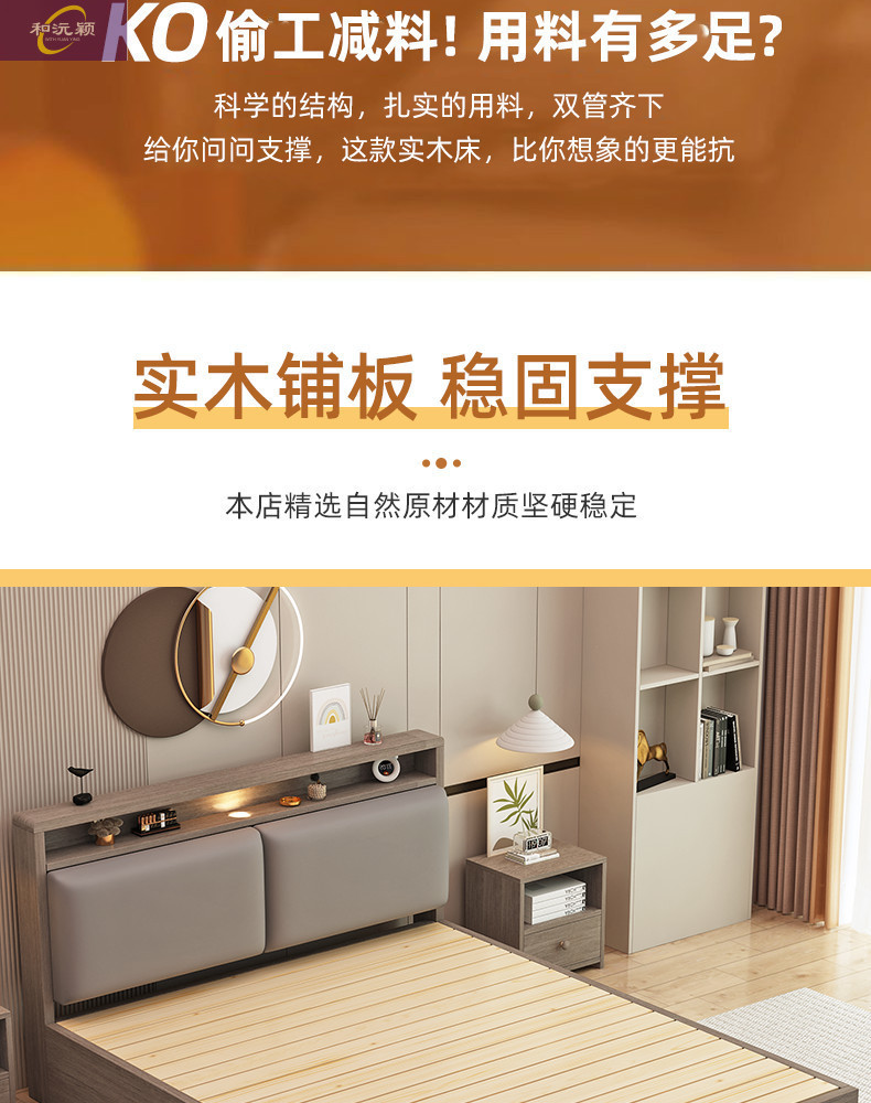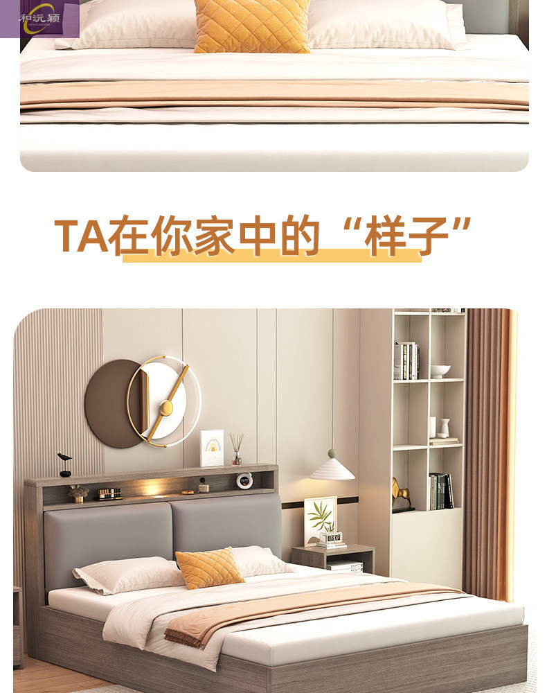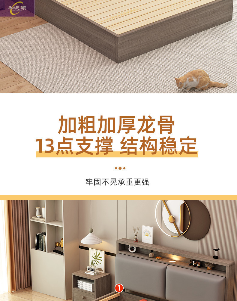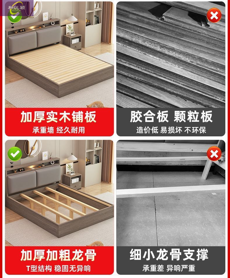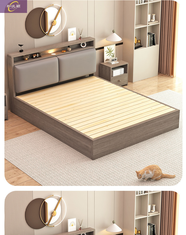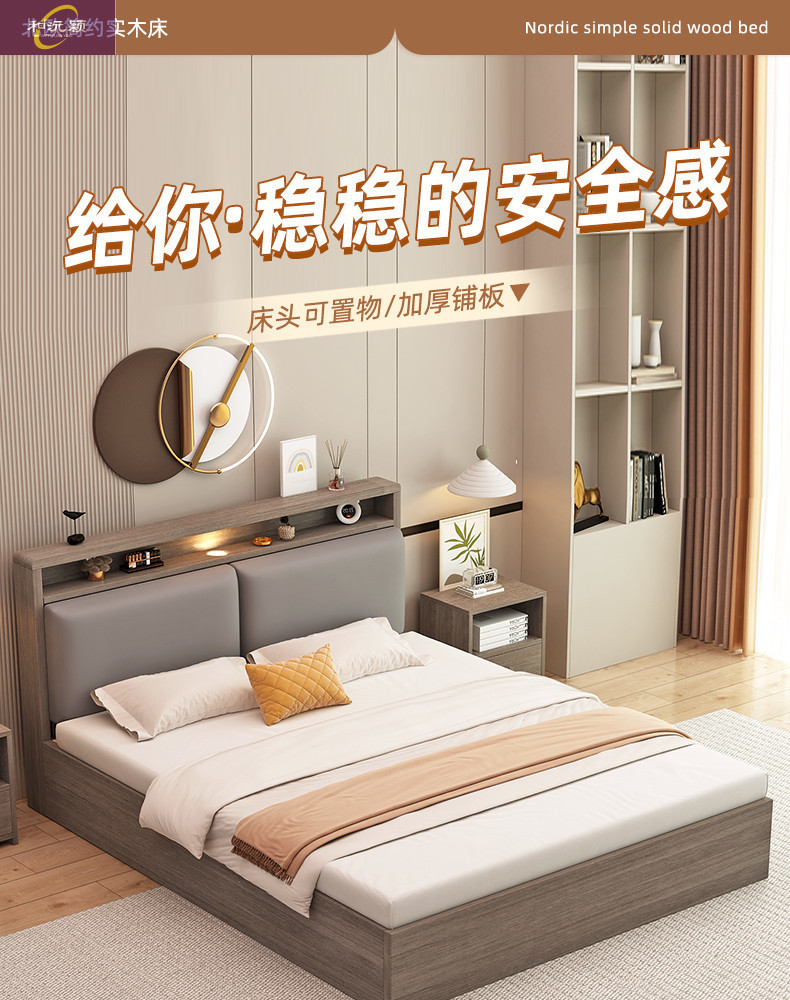 현대적인 미니멀리스트 가정용 원목 침대 새로운 마스터 침실 더블 침대 임대 하우스 B&B 플로어 스탠딩 심플 싱글 및 더블 침대스토어 가기