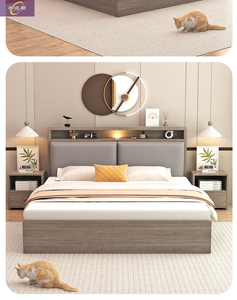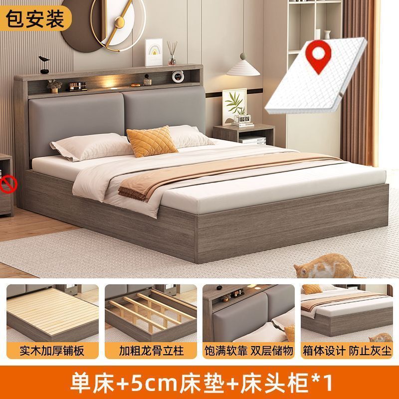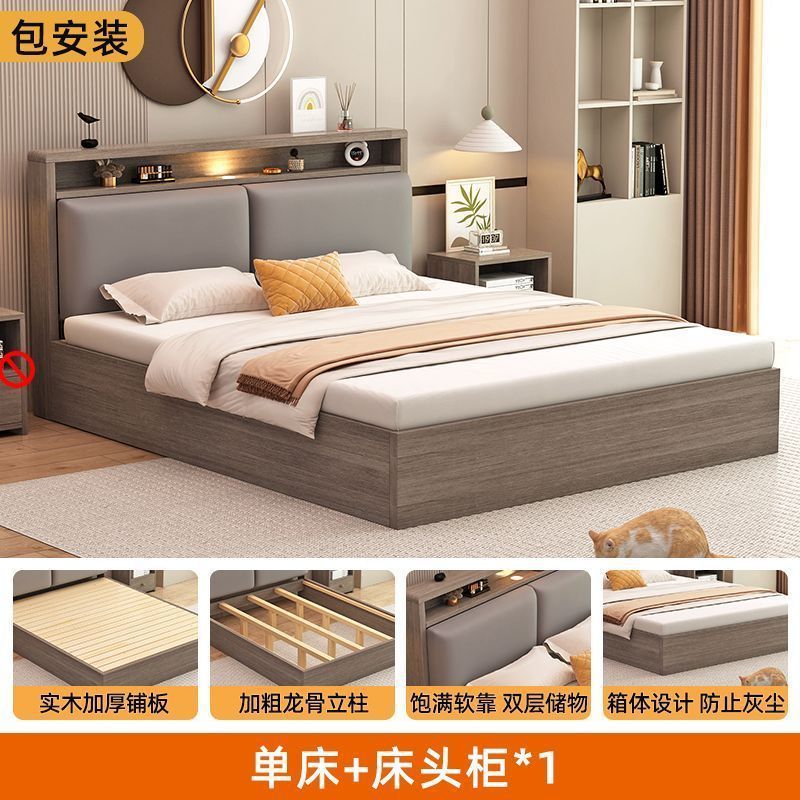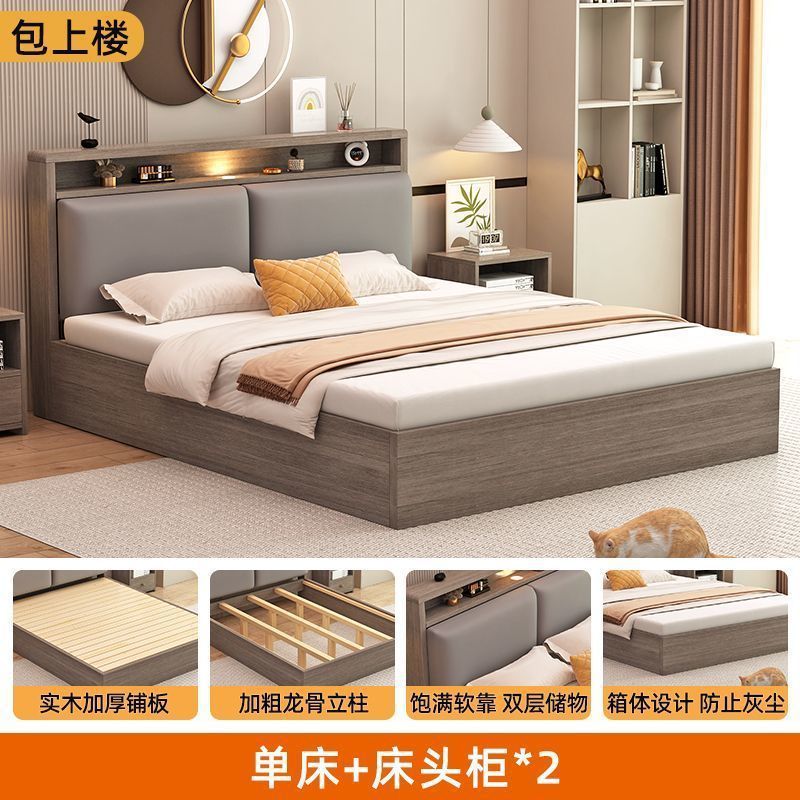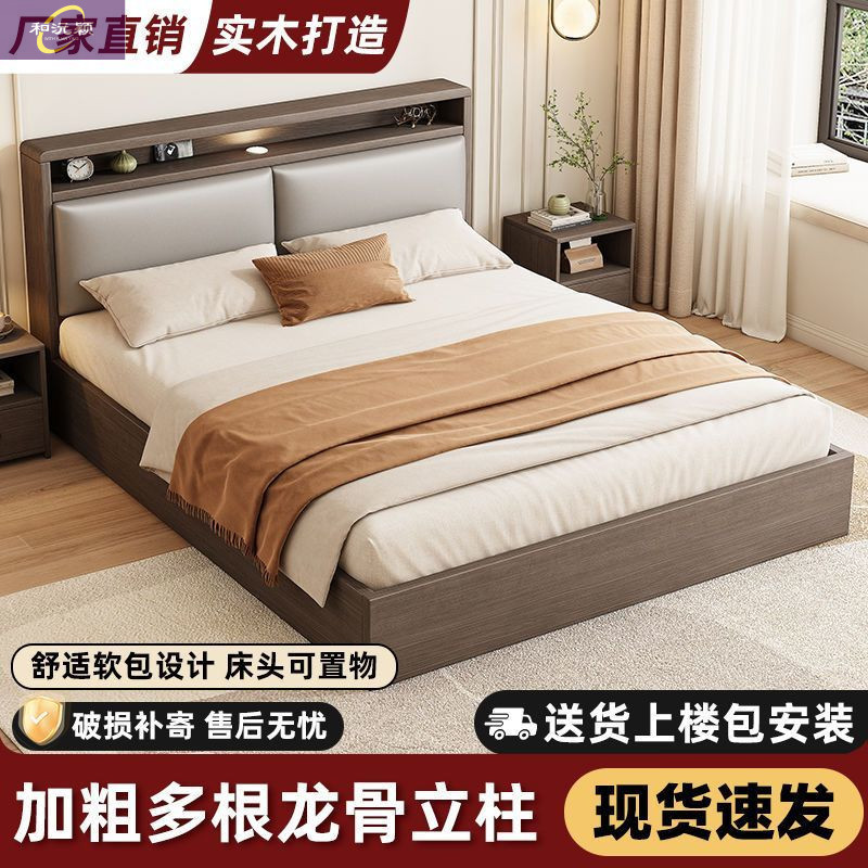 현대적인 미니멀리스트 가정용 원목 침대 새로운 마스터 침실 더블 침대 임대 하우스 B&B 플로어 스탠딩 심플 싱글 및 더블 침대