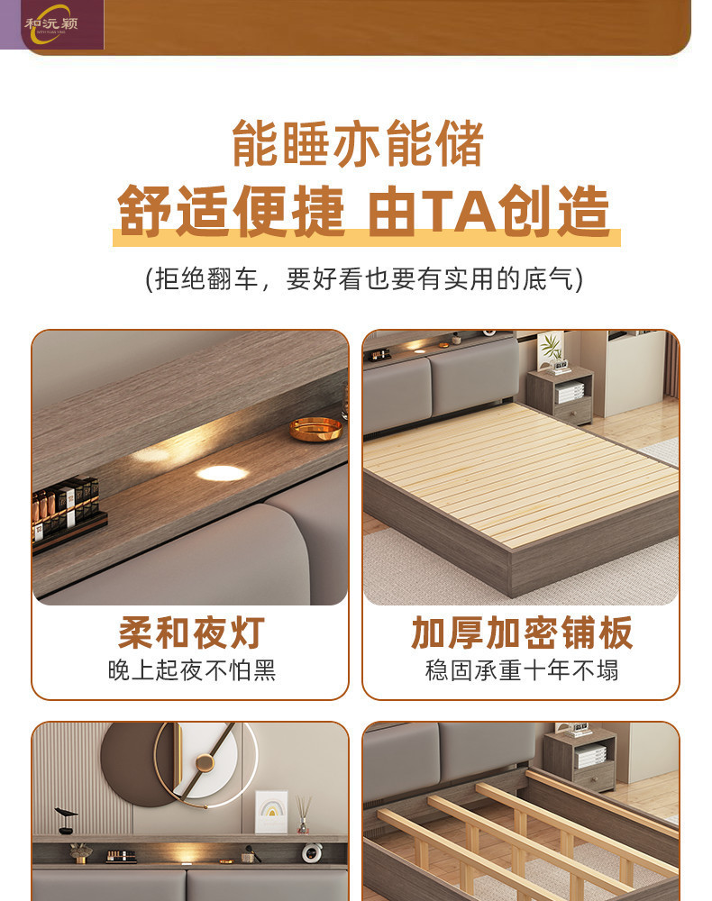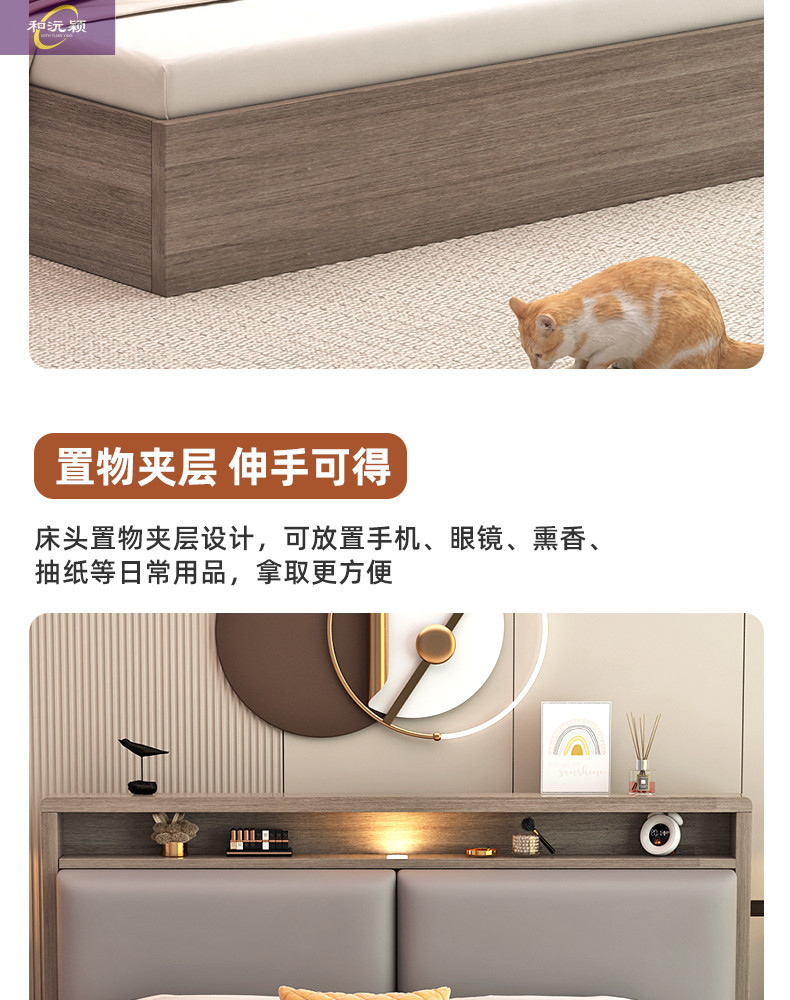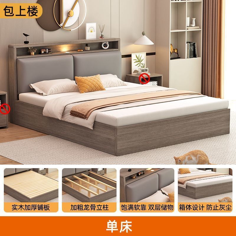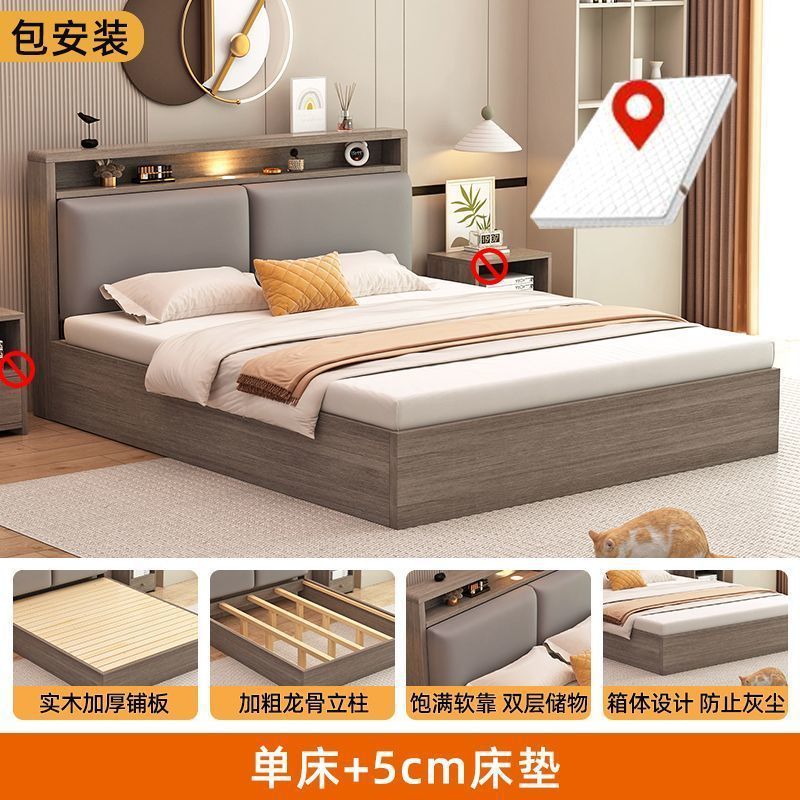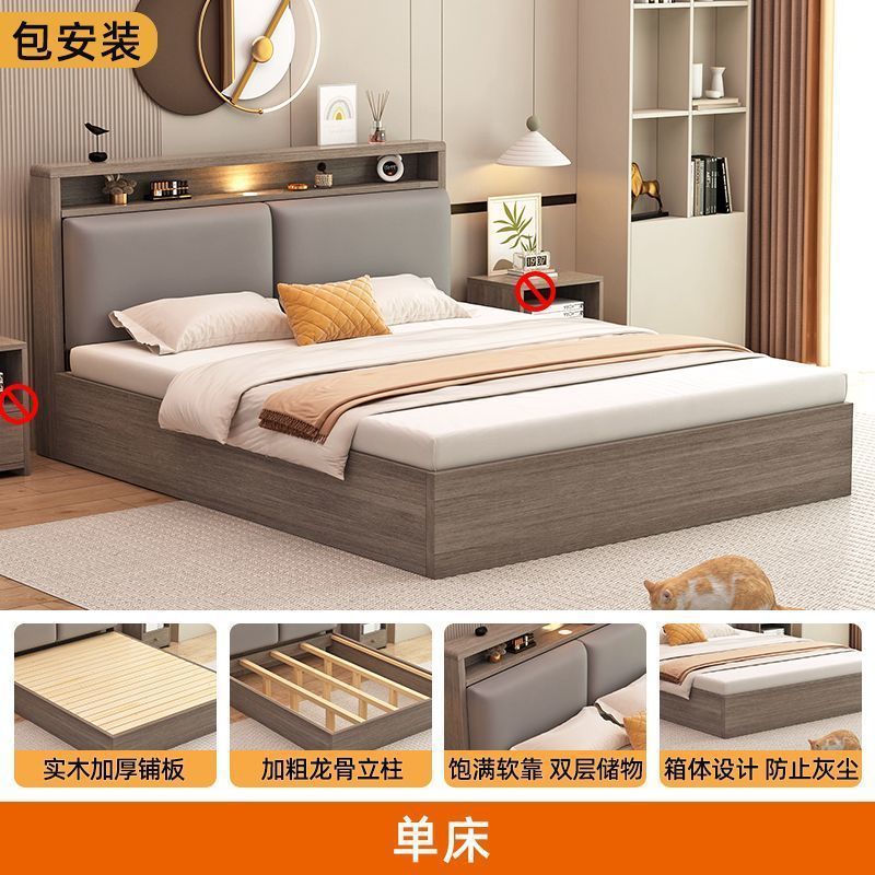 현대적인 미니멀리스트 가정용 원목 침대 새로운 마스터 침실 더블 침대 임대 하우스 B&B 플로어 스탠딩 심플 싱글 및 더블 침대
